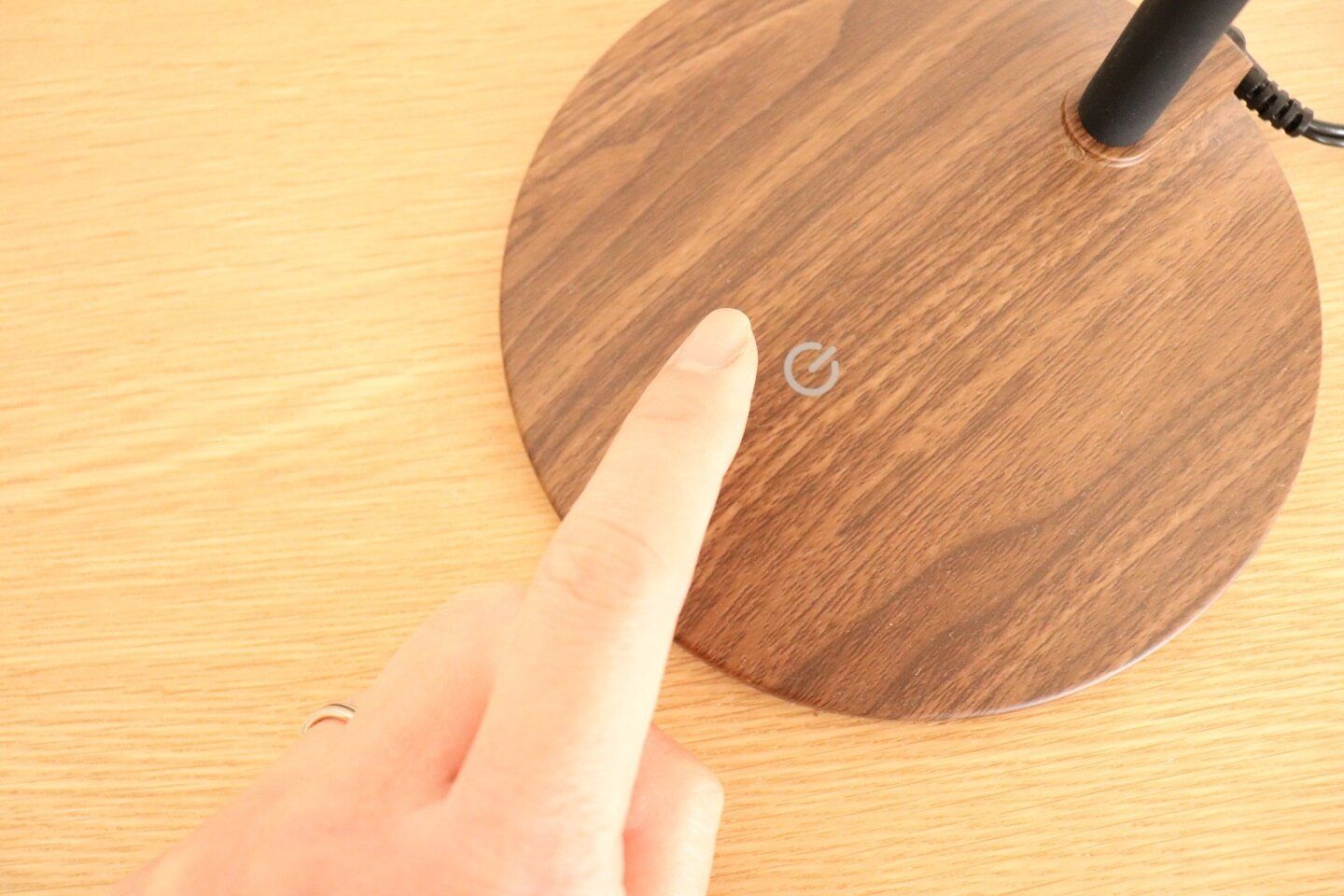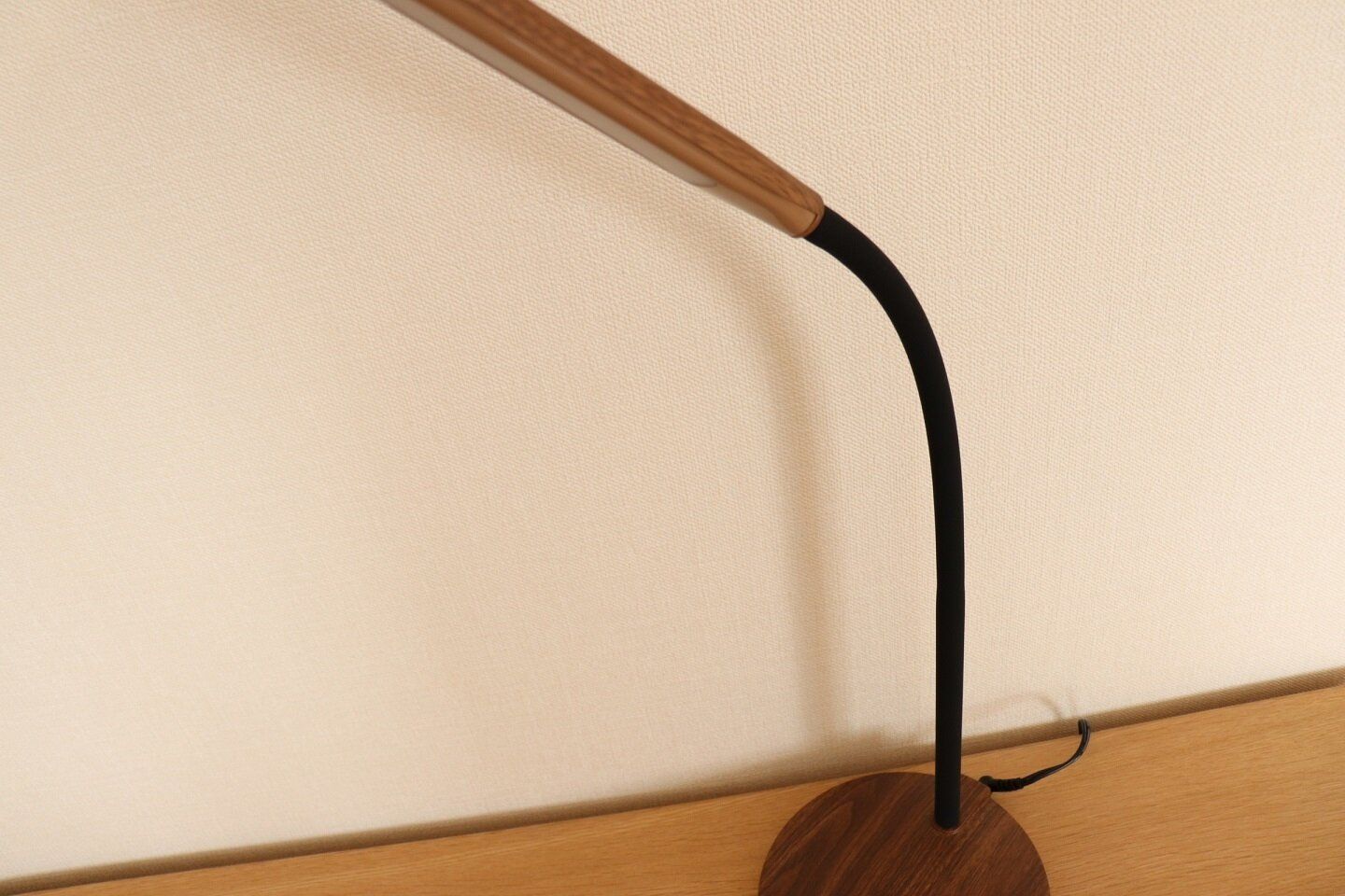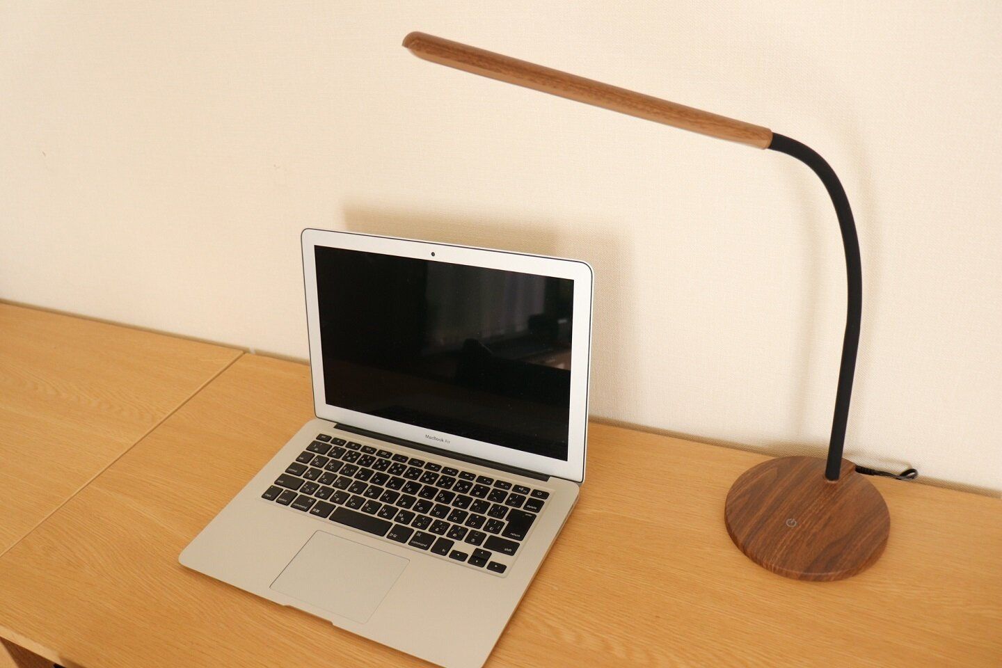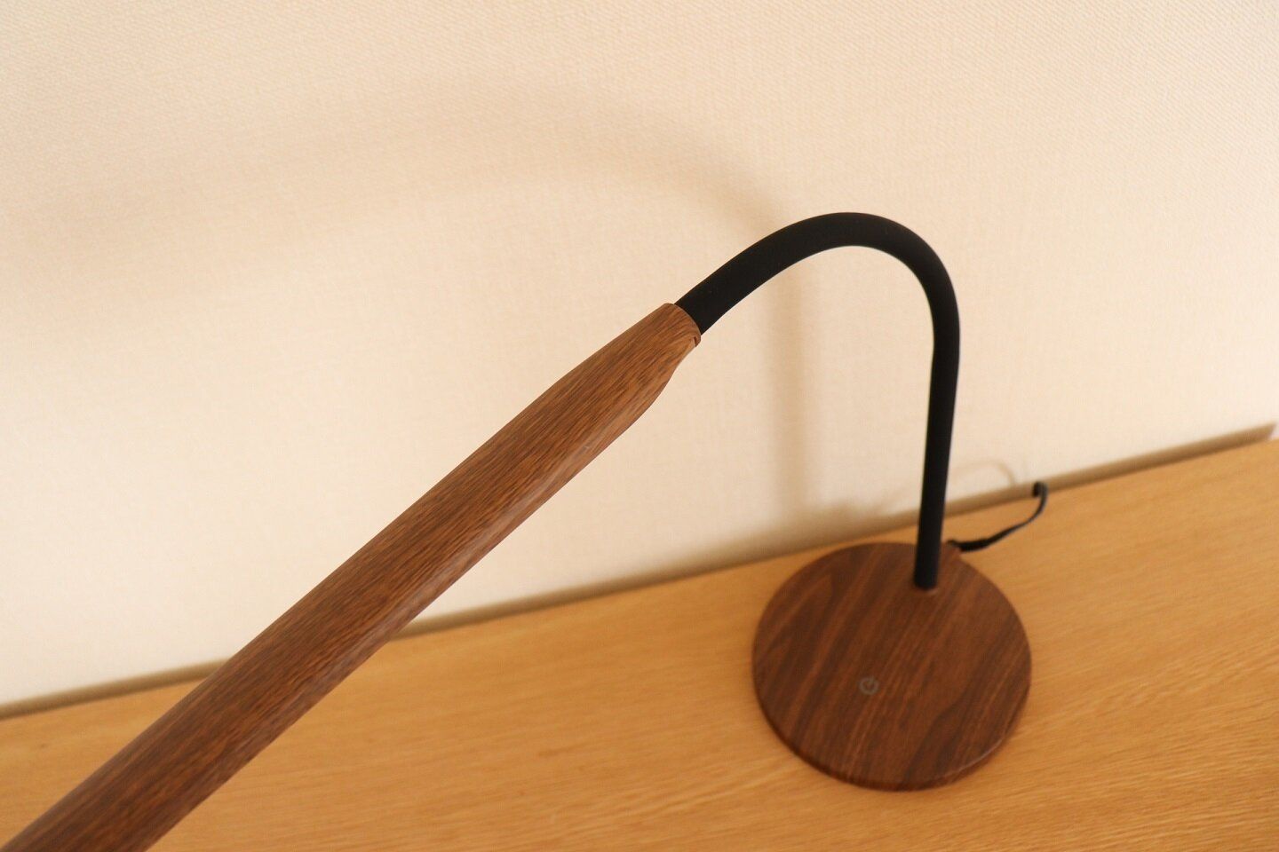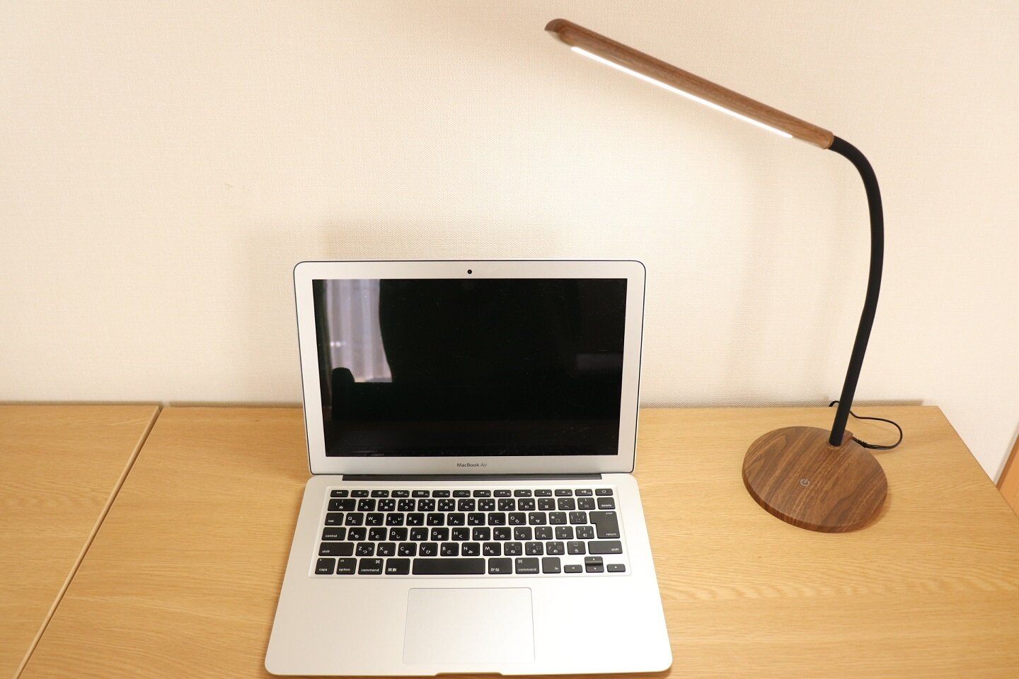 ニトリのLEDライト、木目調でインテリアに馴染む点も個人的にはお気に入りです。