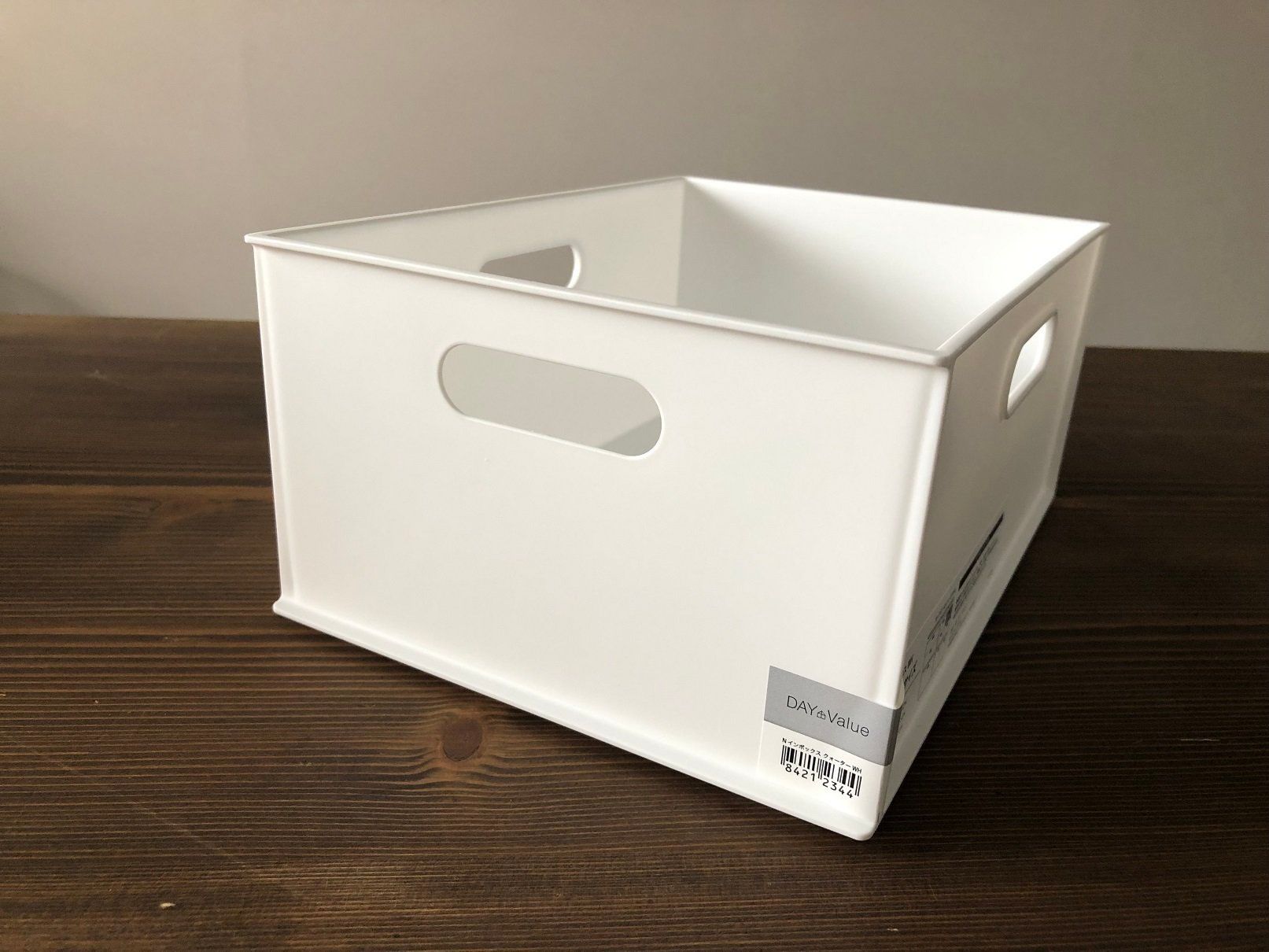 「収納ケース Nインボックス」。サイズは4種類、カラーは7種類あります。とくにおもちゃ収納でおススメなのがレギュラーサイズ。幅38.9×奥行26.6×高さ23.6cmとたっぷりサイズで、価格648円とお手ごろ。スッキリ見せたいかたは、別売りのふたも併せて購入するのもおすすめ。