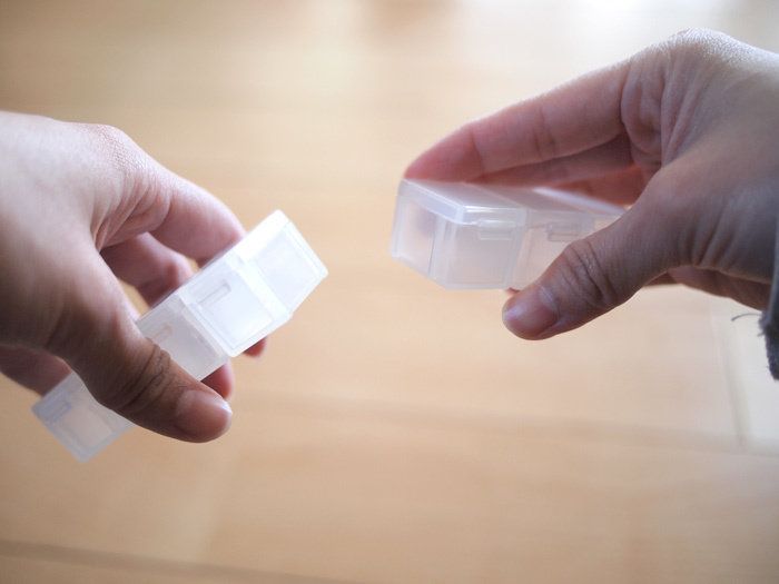 1週間分を想定して7つのピルケースに分けられていますが、朝・昼・晩・寝る前と、飲む薬が分かれているかたもいますよね…そんなかたにオススメなのが、こちらのつなげて使えるピルケース。好きな単位に切り離すことができます!