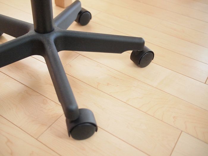 子どもなのでおそらくかなり回転しながら遊ぶだろうと思っていましたが、さほど回転することもなく平和に使っておりますし、キャスターをゴロゴロした際に床に傷がつくこともなかったのがとてもよかったです。少しゴロゴロ音はしますが、許容範囲といえるでしょう。