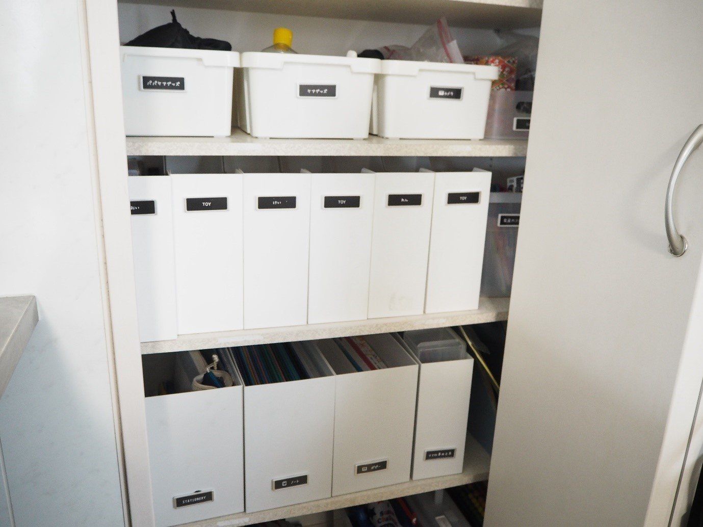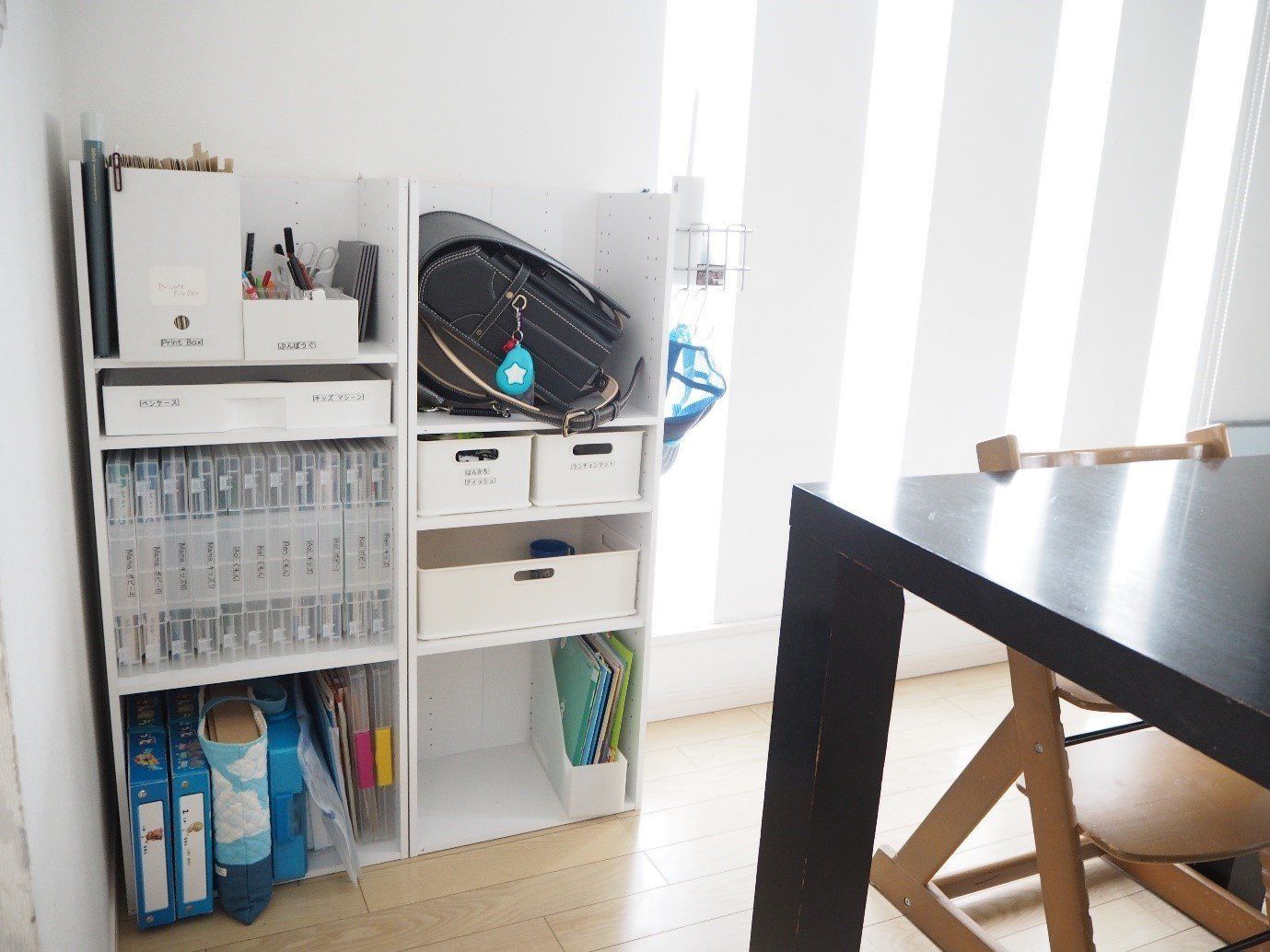 子どもが学校に入ると多くなるプリント類。それらをスッキリ収納させるなら、ファイルボックスがおすすめ。横幅があるタイプなら、こまごまとしたおもちゃの収納にも便利です。