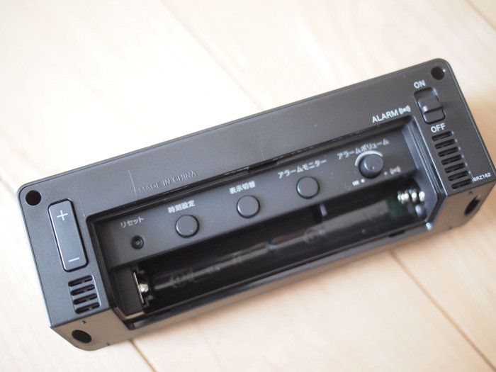 電池を入れ、20分程度時間を置けば、自動的に今の時間を受信してくれます。表示項目は、日時と曜日、湿度と気温まで!アラーム機能もバッチリでスヌーズ機能もあり、もちろんON/OFFもできます。アラームは大音量で、目覚めバッチリといったところでしょうか。