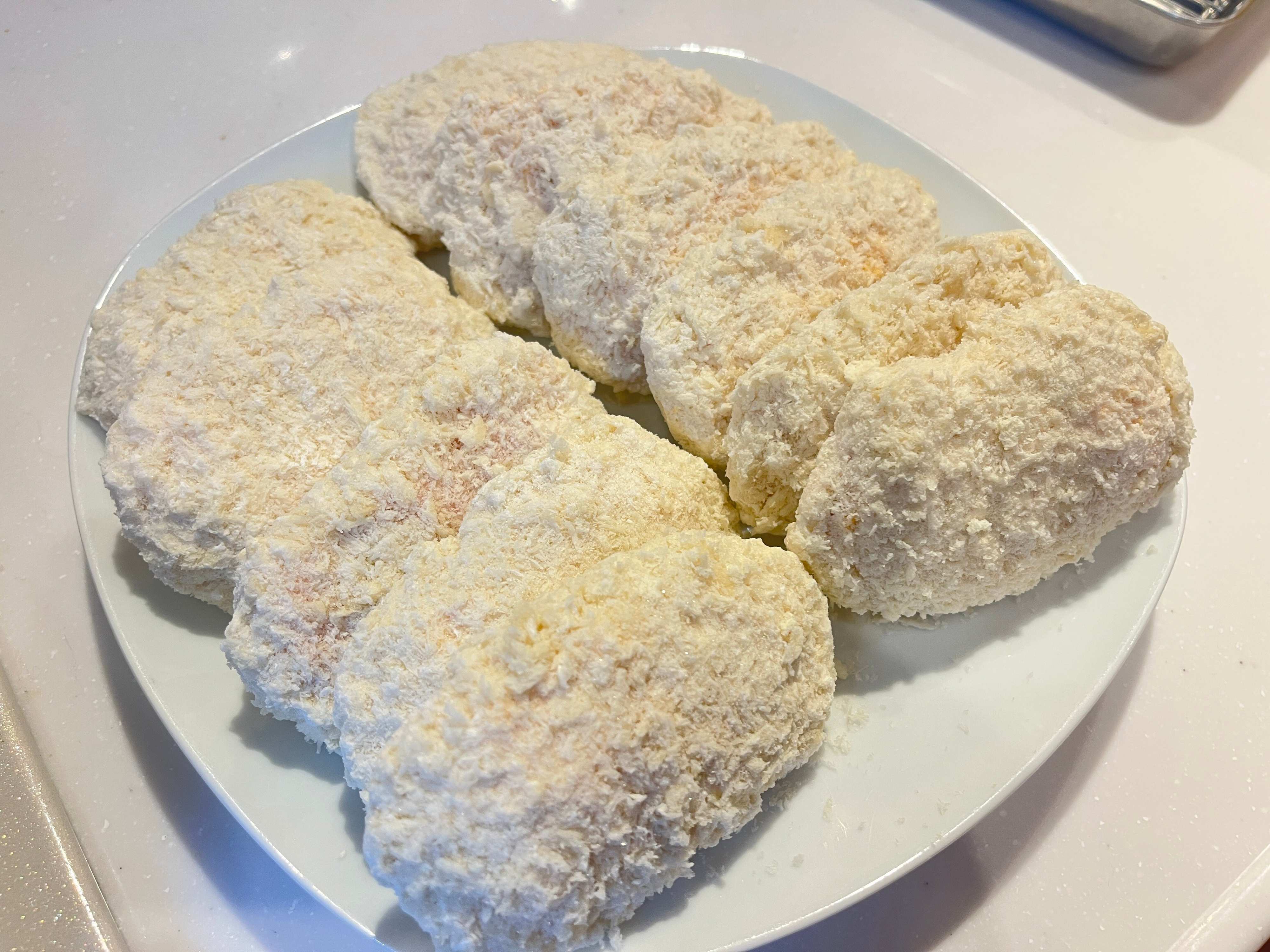 ほかの「鶏屋さんの」シリーズのチキンカツは不揃いなのに対し、チーズチキンカツはだいたい同じくらいの大きさのものが入っていました。
