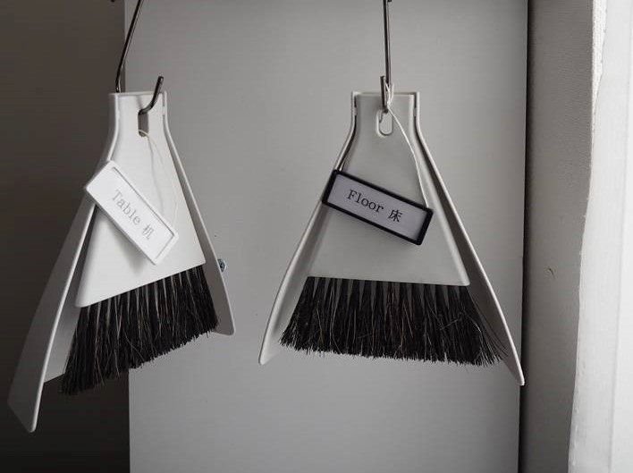 小ぶりだけど頼りになる!「卓上ほうき(ちりとり付き)」390円(税込)