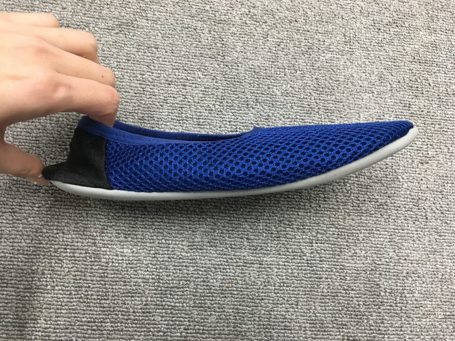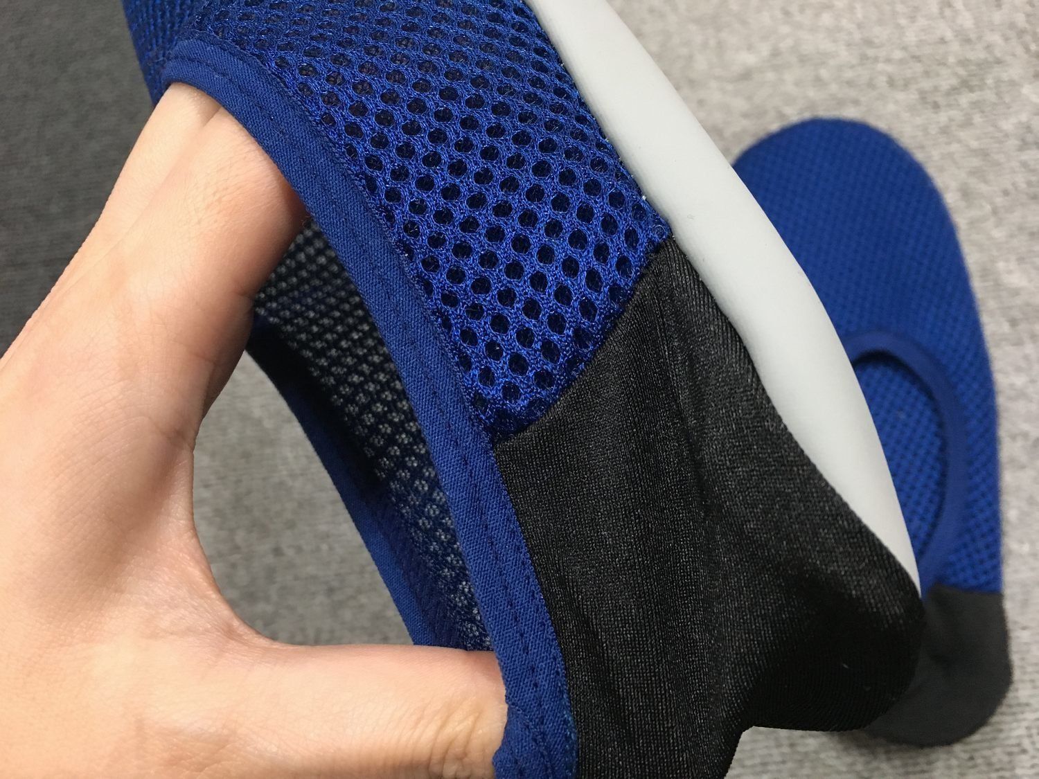 「おうちスリッポン」のサイズは2種類。Mサイズが22~24cm、Lサイズが25~27cmです。筆者は足のサイズが24.5cmなのでMとLの境目ですが、フィット感があるほうがよいのでMサイズをチョイス。メッシュ素材で軽いのと、かかと部分も柔らかい素材なので、履き心地はまったく問題ありません。