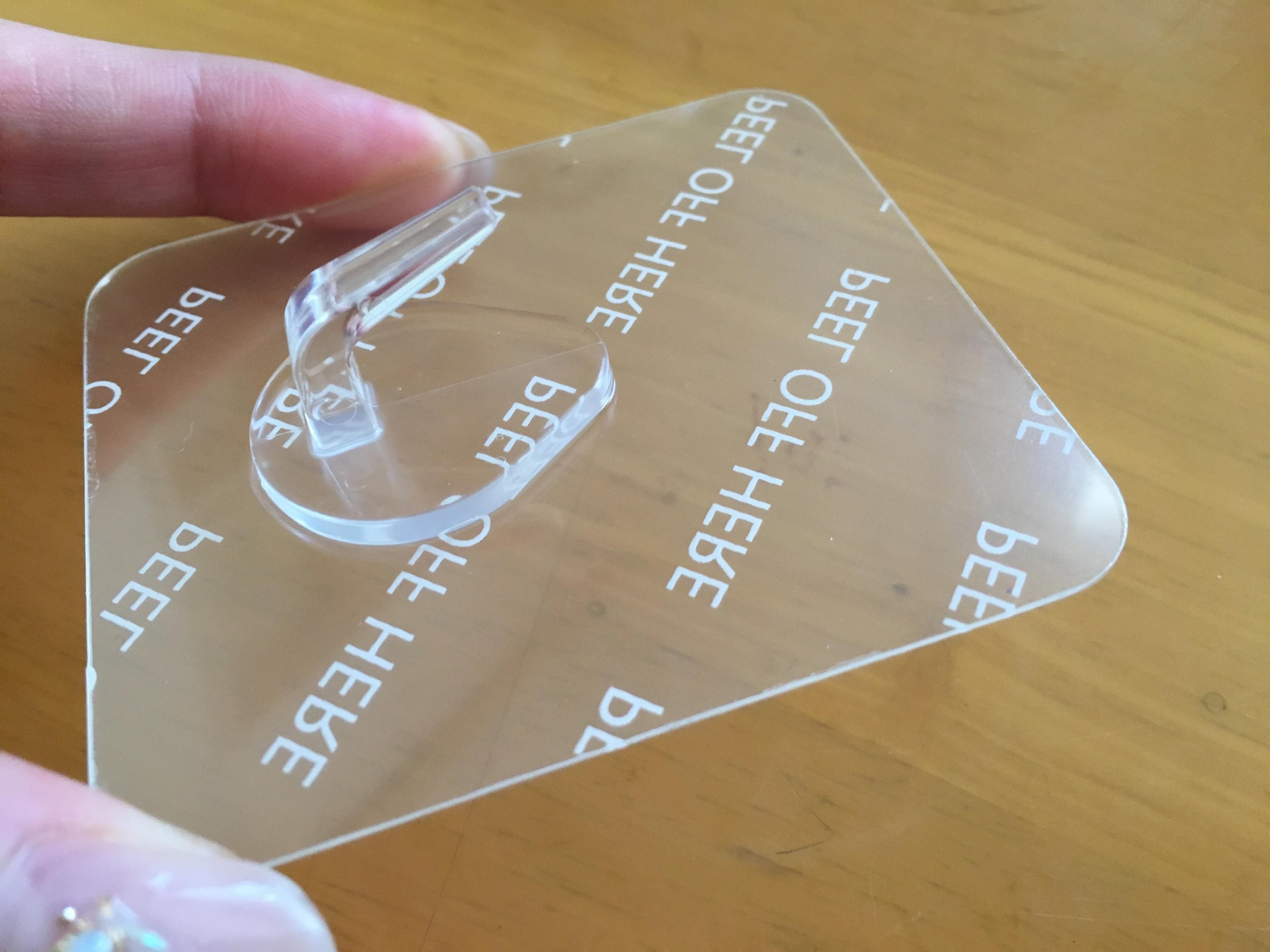 取りつけはとってもカンタン!裏面の保護シールを剥がして、手で空気を抜きながら貼るだけ。貼る際には、壁面の水分や汚れをしっかり拭いておきましょう。