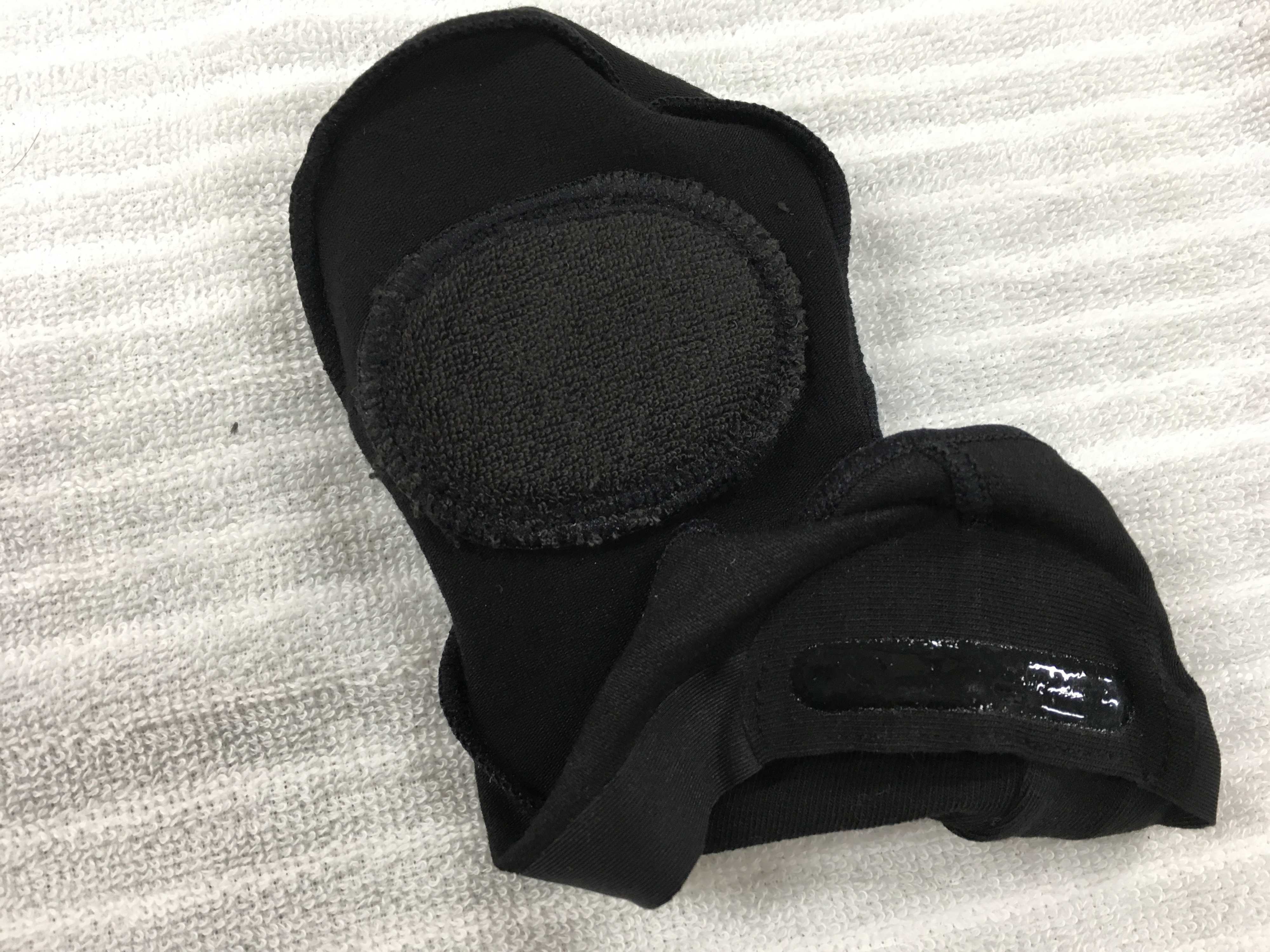 商品名は「綿混深履きフットカバー」。色は黒で23〜25cm用です。足底にクッションが付いていて、かかとの内側に滑り止めが付いているのが特徴。靴のサイズ24.5センチの私がはいてみたところ、足をしっかり包み込む感じがしました。