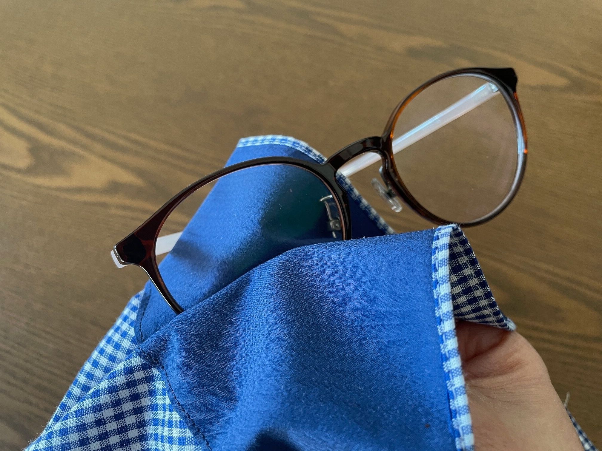 ちょっとメガネが汚れてしまった!というときに、ハンカチでササっと拭いてしまうときがありますが、ハンカチでは汚れがのびるだけでイマイチきれいにならないときも。