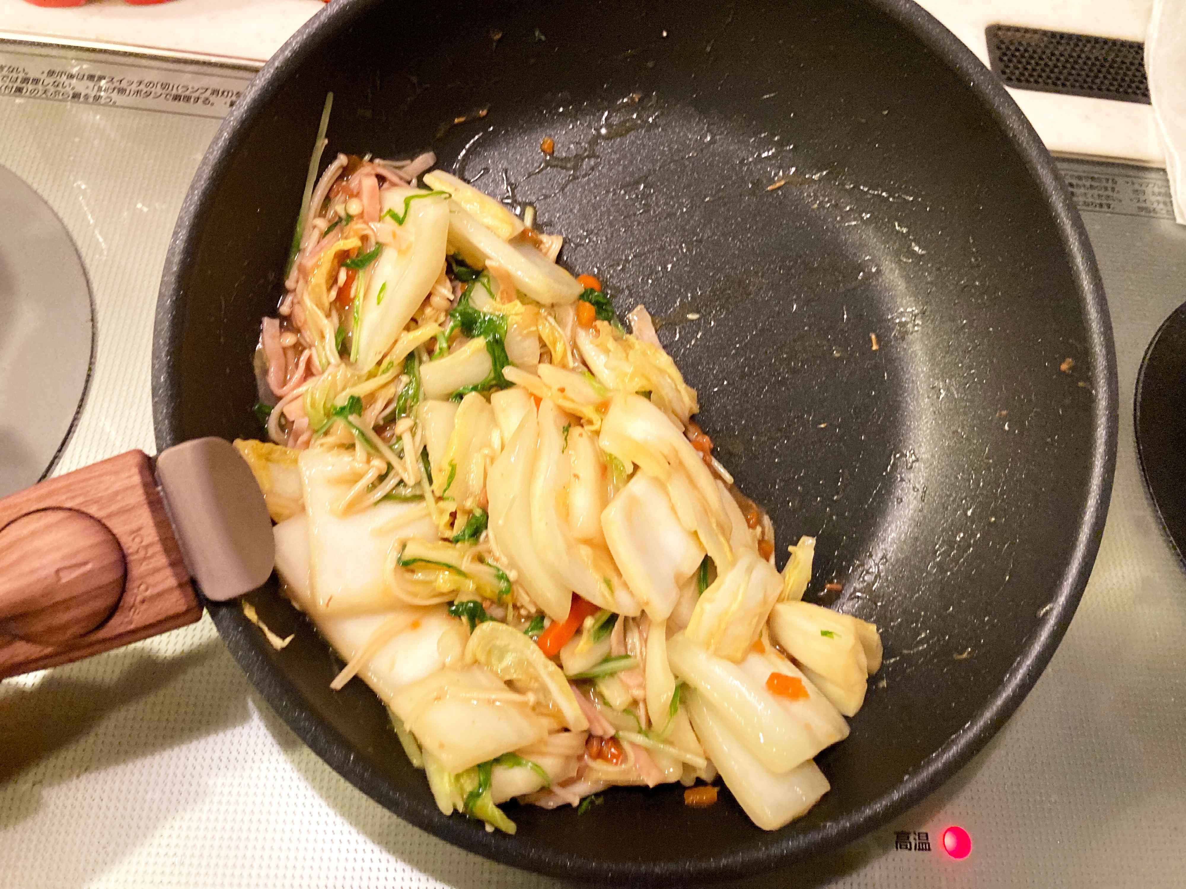フライパンに全くくっつく事なく、菜箸でらくらく具材を炒める事が出来ます。