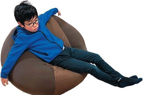 中身はビーズ。カバーの上下面と側面(4面)の素材が違うため、置き方によって座り心地を変えられる。「体にフィットするソファ・本体」(65×65×43cm)¥9,082、「体にフィットするソファ用帆布カバー」(ブラウン)¥2,719