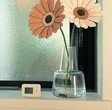 温湿度表示に加え、熱中症注意喚起を液晶表示とLEDでお知らせ。(幅45×奥行き13×高さ30mm)¥900
