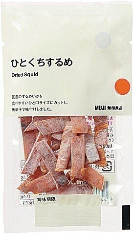 国産のするめいかを食べやすい一口サイズにカットし、唐辛子で味つけ。ダイエッターにも人気のおやつ。(10g、¥92)