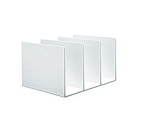 3仕切りつきの大サイズ。仕切りの間隔は約8.3cm。スチロール製で丈夫かつ倒れにくい。横置きでも使用可能。(約27×21×16cm) ¥810