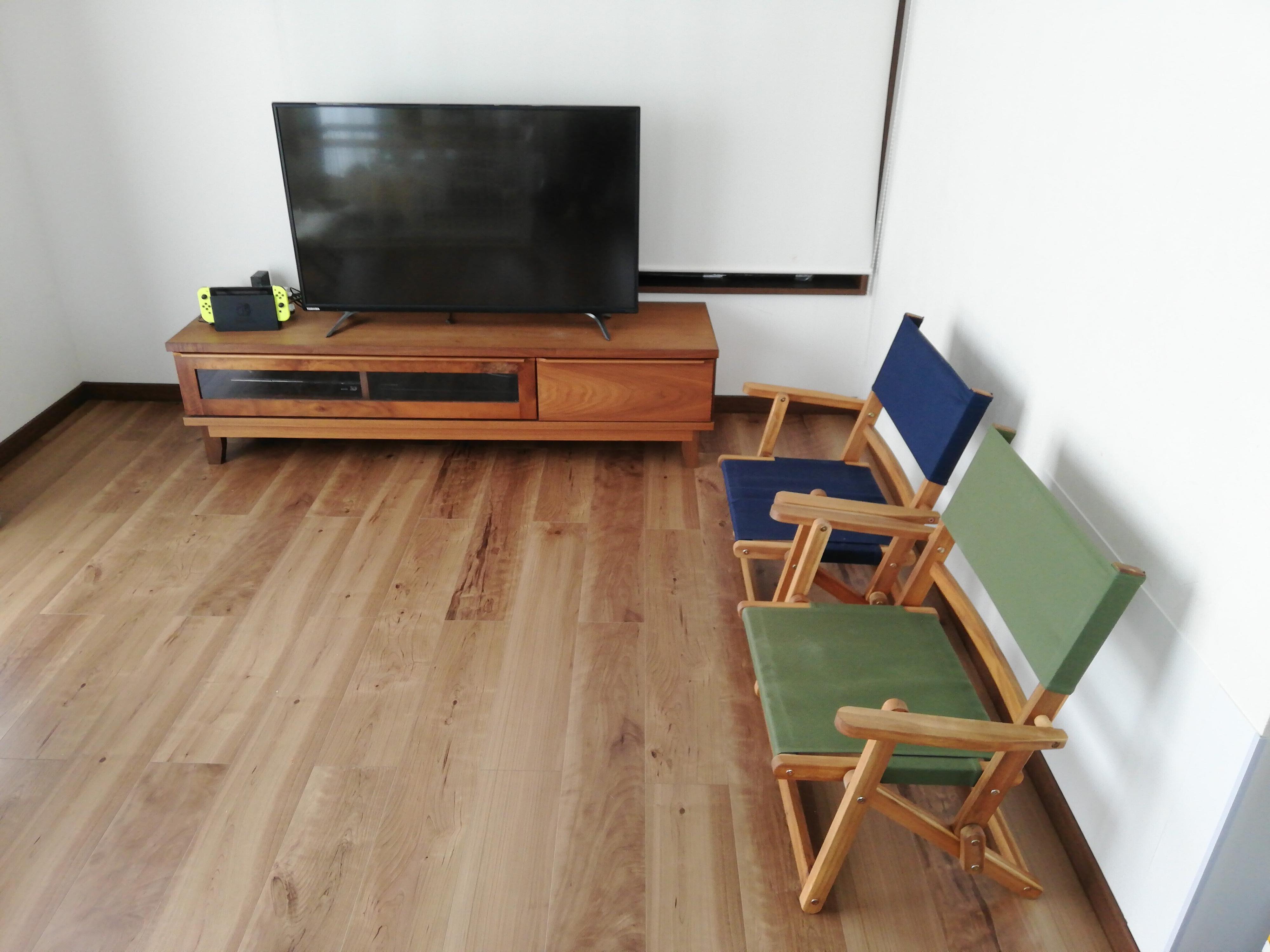 使わないときはたたんでおけば床も広々で掃除もしやすい!ウッドデッキに運んで使ったり、家中で活躍してくれています。