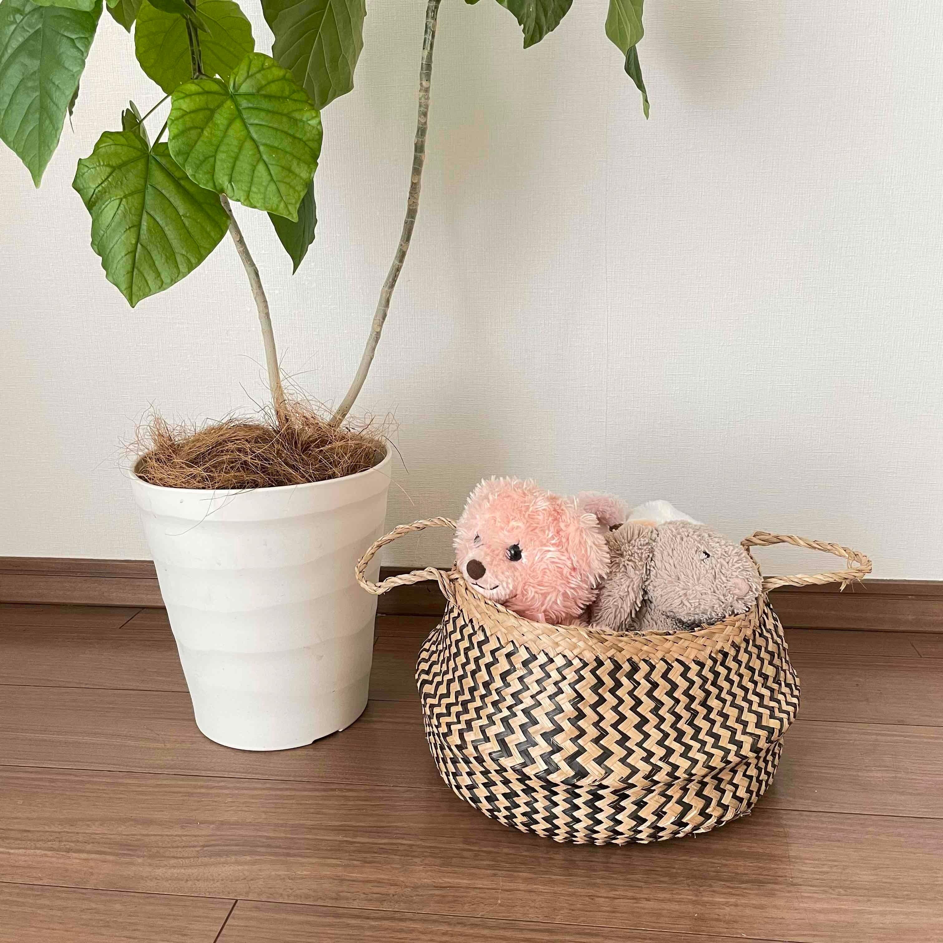 ごちゃつきがちなぬいぐるみも、このカゴにまとめれば、すっきりかわいくまとまりますよ。