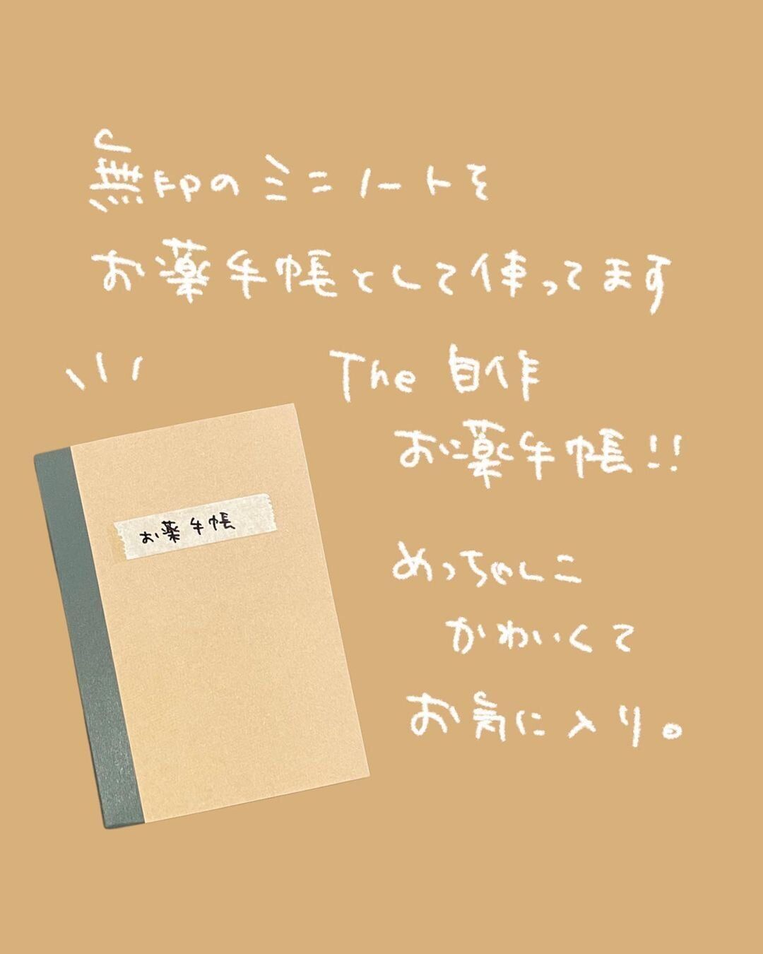 無印のA6サイズのノートを「お薬手帳」として使うアイデアです。シンプルなので、カスタマイズしやすく、自分好みの「お薬手帳」がつくれます。1冊が30枚で70円というリーズナブルなお値段もうれしいですね。