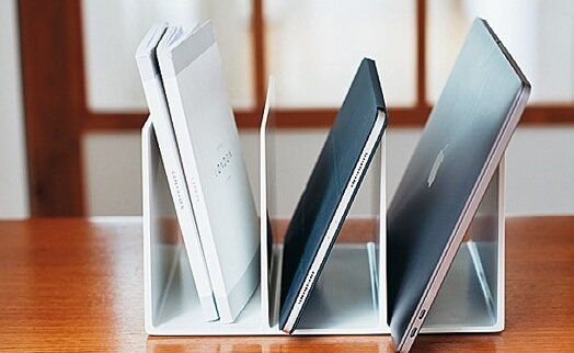 プラスチックの軽いブックスタンドと違い、ある程度の重い物もバランスよく収納OK。立てて収納したい物は、これ1つですっきり片づく!