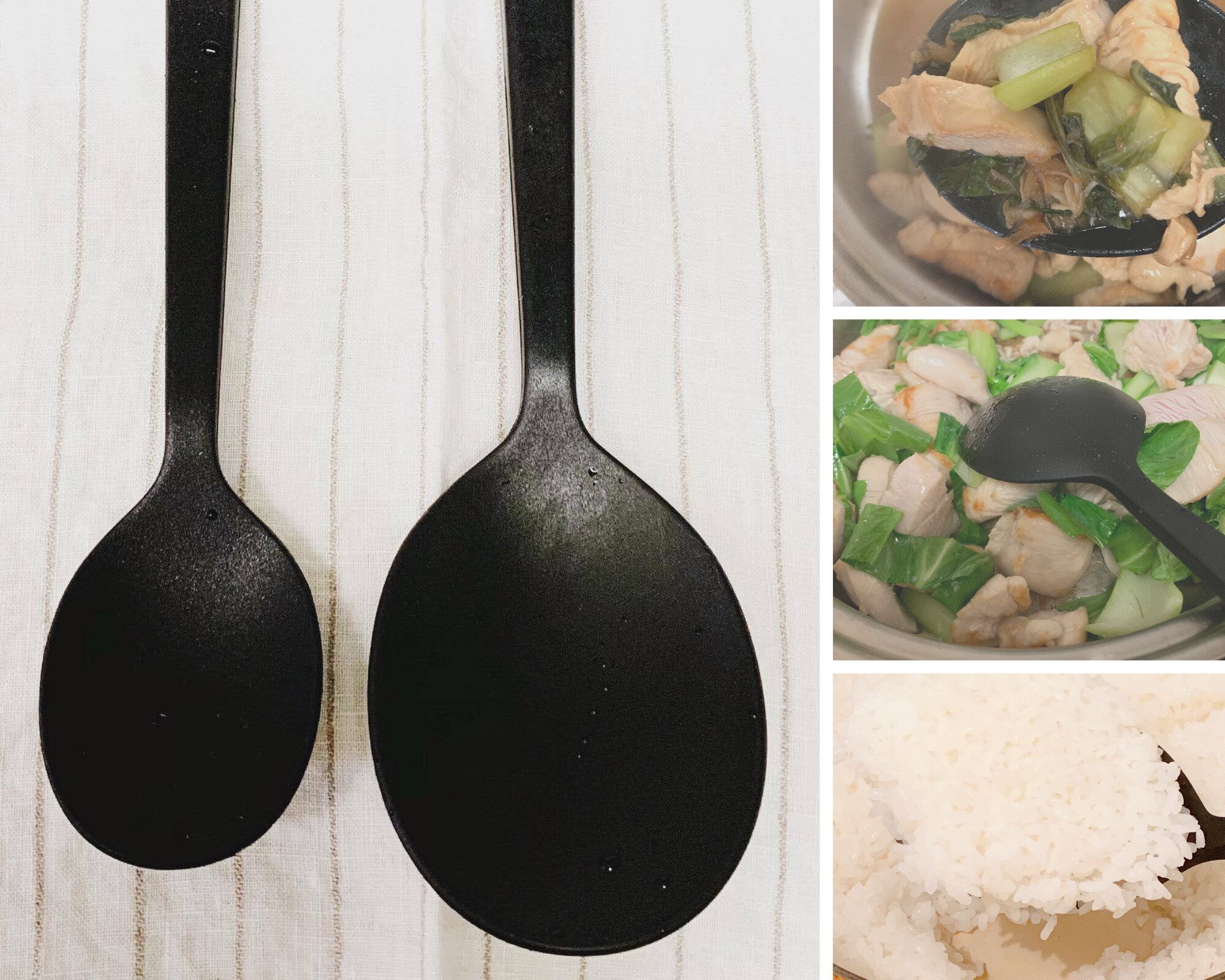「シリコーン調理スプーン」は炒める、すくう、盛り付ける、が1本でできる優れもの。ごはんのしゃもじ代わりにも使っています。