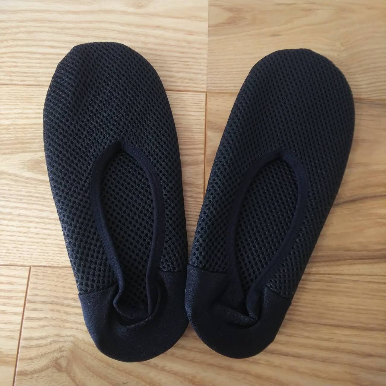 スリッパというよりも、靴下の感覚に近いです。うれしいことに中底は思ったよりクッション性があります。アッパーが足にピタっとくっついてくれるので、足早に歩いてもまったく脱げません。すべって転ぶ心配もない感じです。