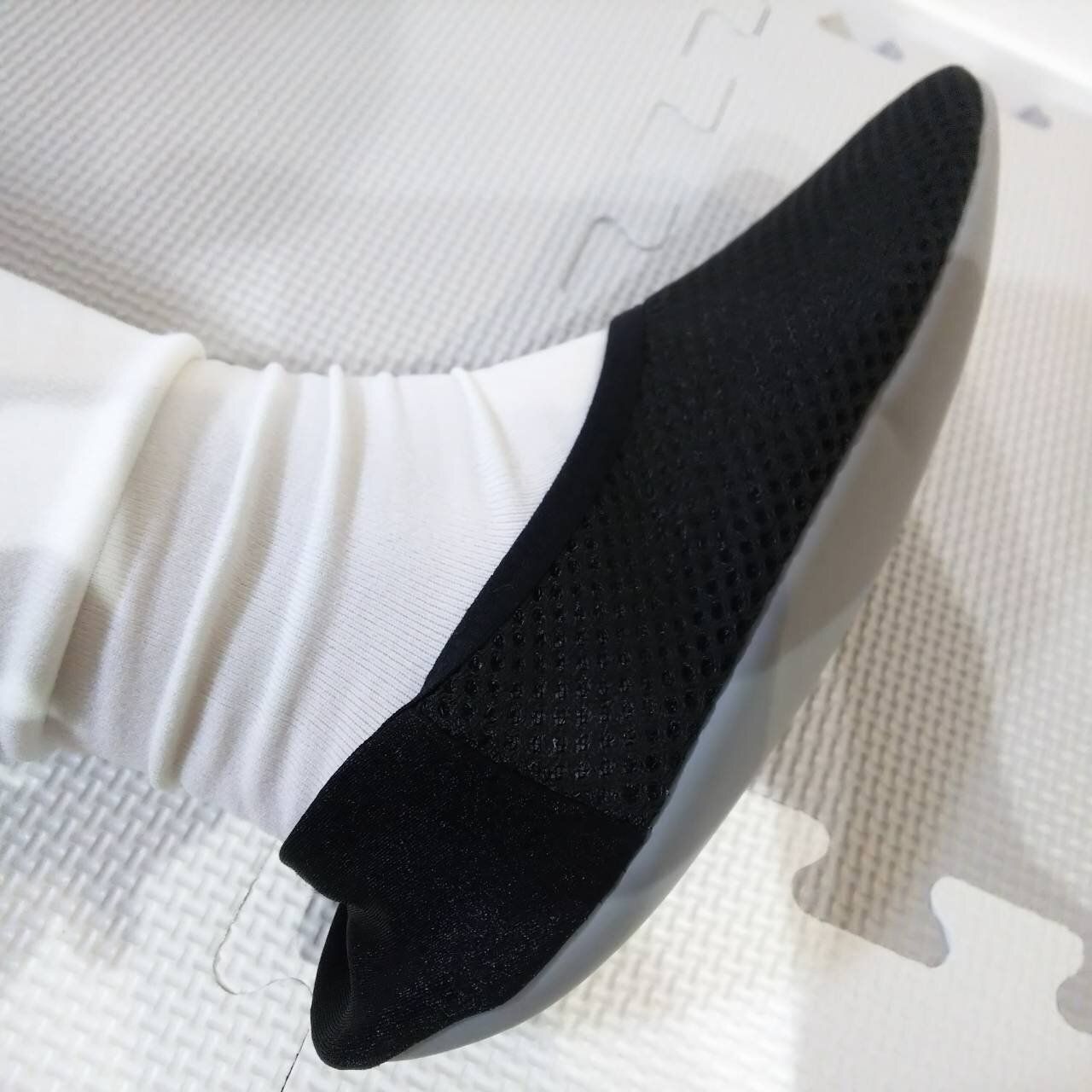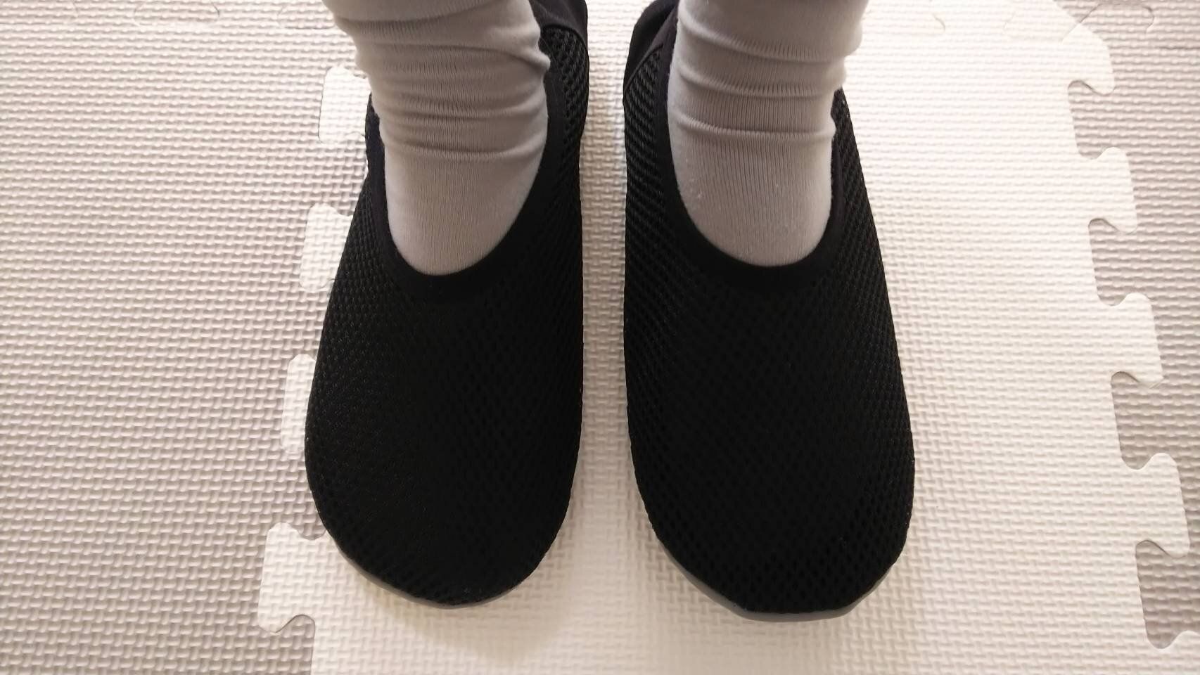 また、おうちスリッポンは、スリッパのように歩くたびに「パタパタ」という音がしないので、お昼寝中の息子のそばをとおるときにも堂々と歩けるようになりました。