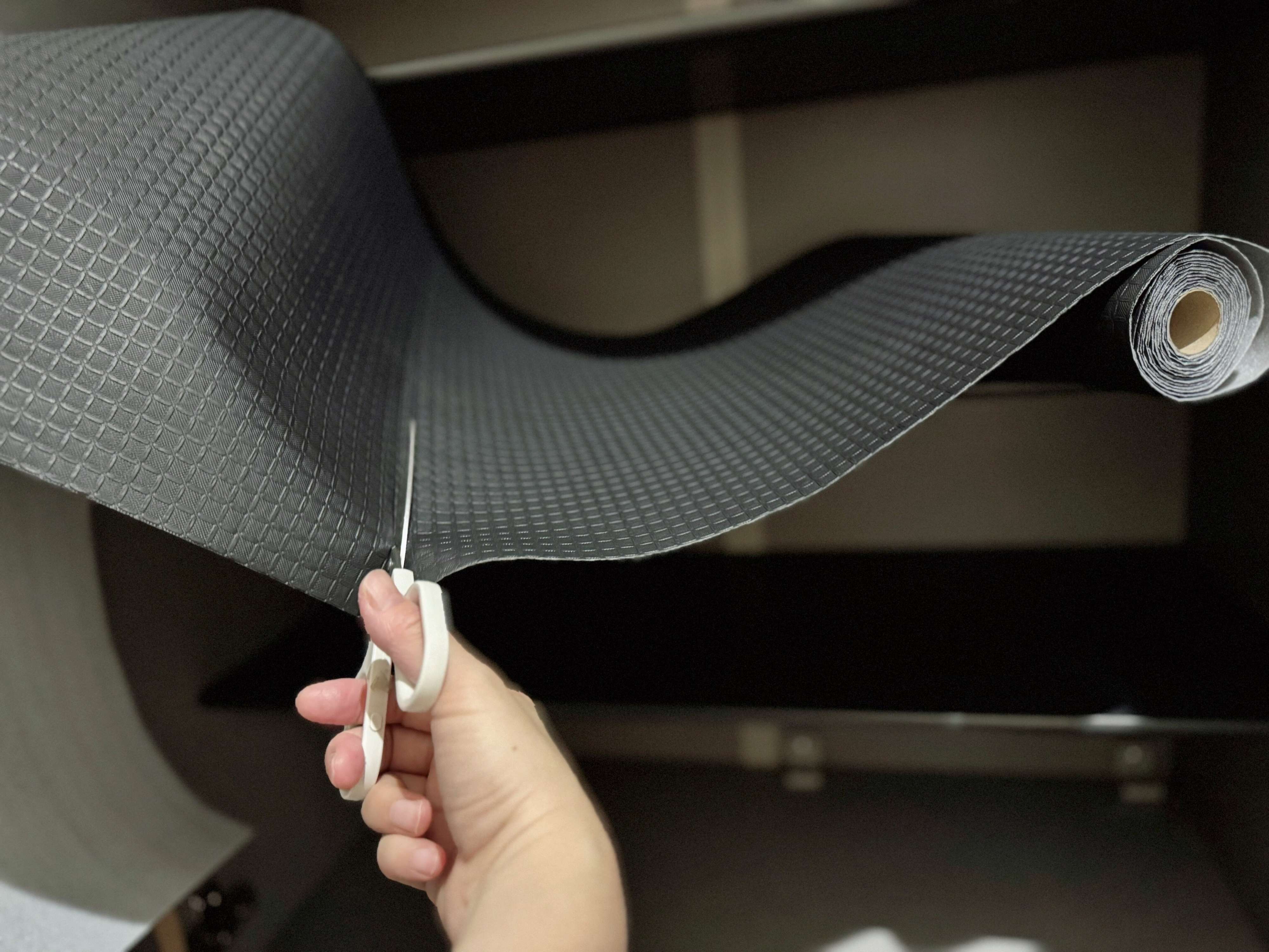 カットすることで縦横ピッタリサイズにすることができます。わが家では、4段分が1ロールでまかないきれました。