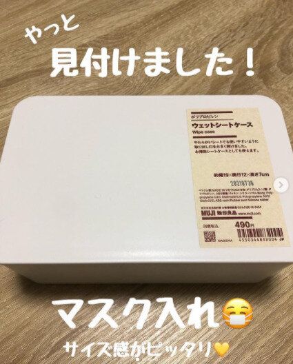 無印良品のウェットシートケースはマスクの収納にぴったりと評判です。今やマスクは欠かせなくなり、マスク収納もあると便利になりましたね。こちらは490円の商品です。