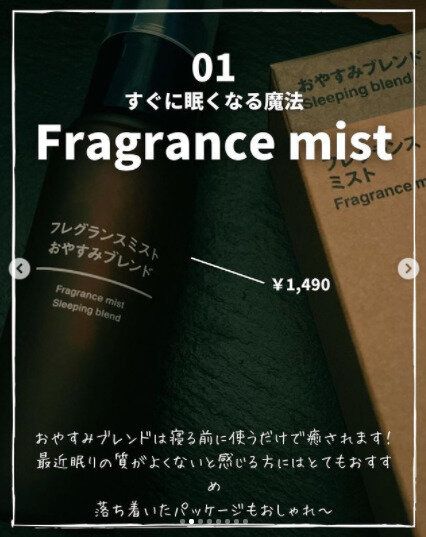 もっと手軽にアロマを楽しみたい人は「フレグランスミストおやすみブレンド」1,490円がおすすめ。