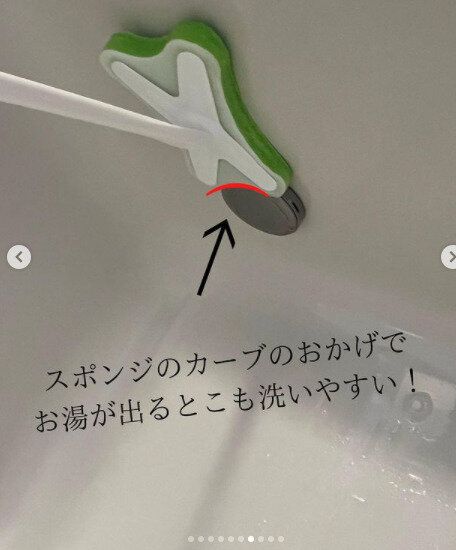 「風呂掃除ならこれ!」と大絶賛のアイテムが「楽フィットバスクリーナー」(610円)になります。本体の重さが120gしかなく、とても軽いのが特徴。柄の長さは55cmで、スポンジがしなるため、お風呂の角のカーブにもきちんとフィットするでしょう。さらに、スポンジの形状にも注目。カーブの部分が風呂釜のお湯が出るところのふたにもぴったりと沿うため、洗い残しがなくなります。替えスポンジも売られており、古くなればスポンジの交換のみでOKなのも高ポイントですね。まさにリーズナブルで高コスパのアイテムです。