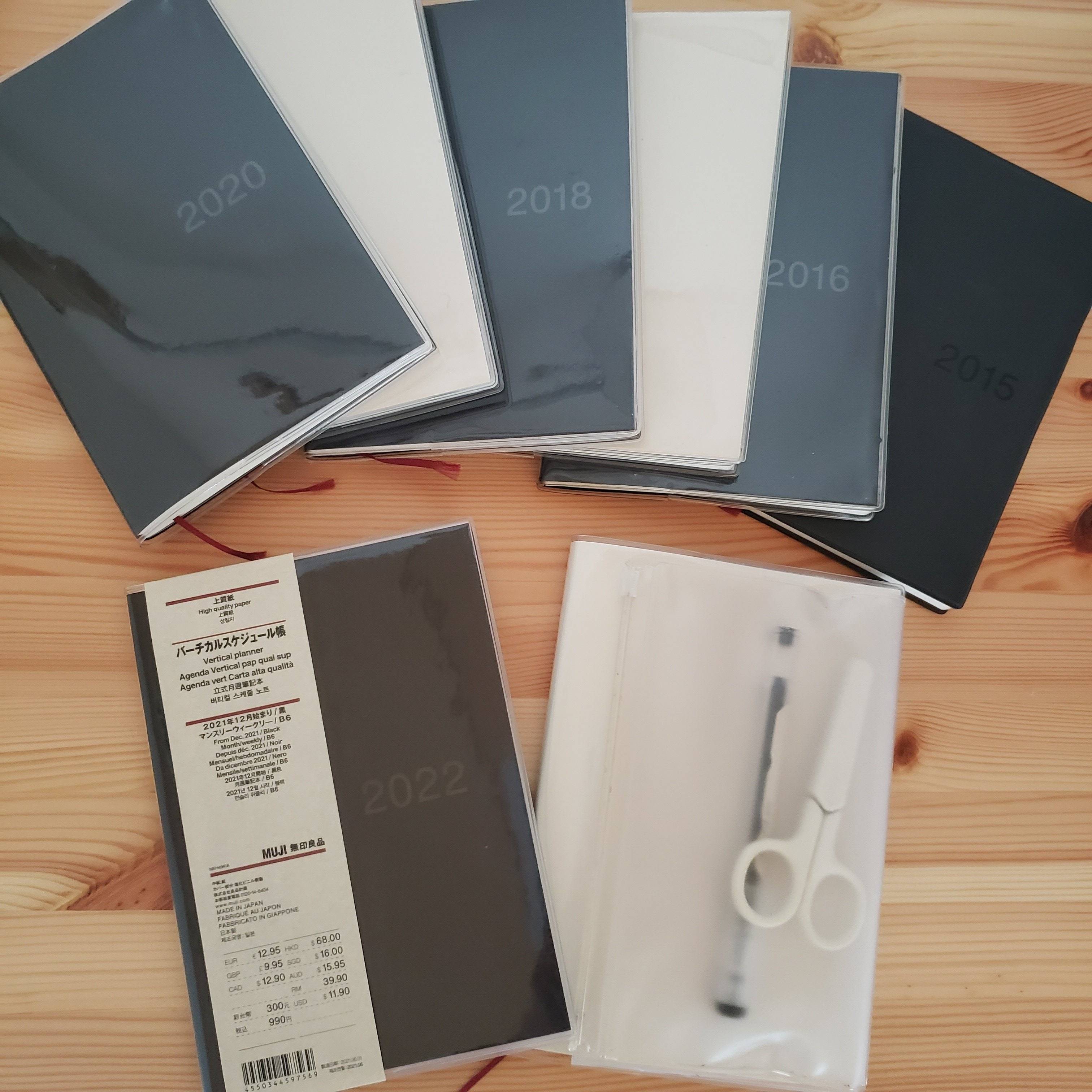 最初はコンパクトな手帳を使っていましたが、スケジュールだけでなくいろいろ書き込みたいと思い、それからはバーチカルスケジュール帳を使っています。今回で7回目の購入と私の中でずっとブレずにいます。