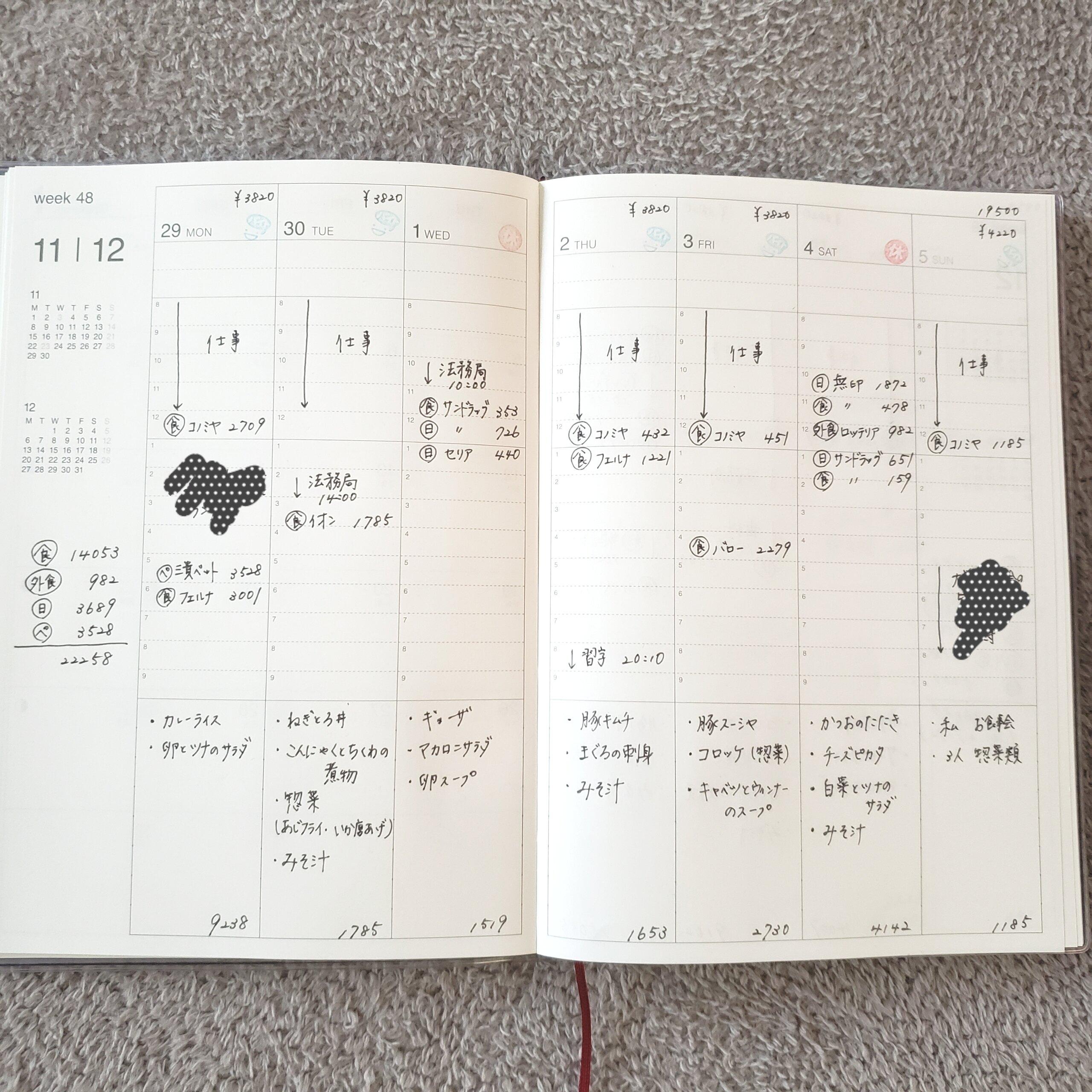 どのように書き込んでいるのか?お恥ずかしながらリアルな我が家の家計簿、スケジュール、夕飯メニューをお見せしながら紹介します。