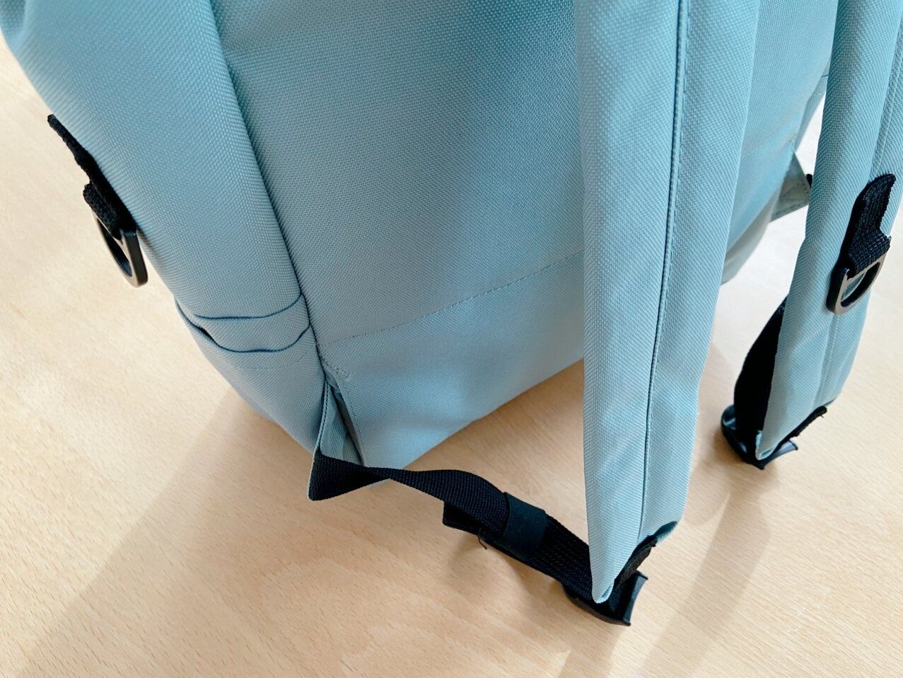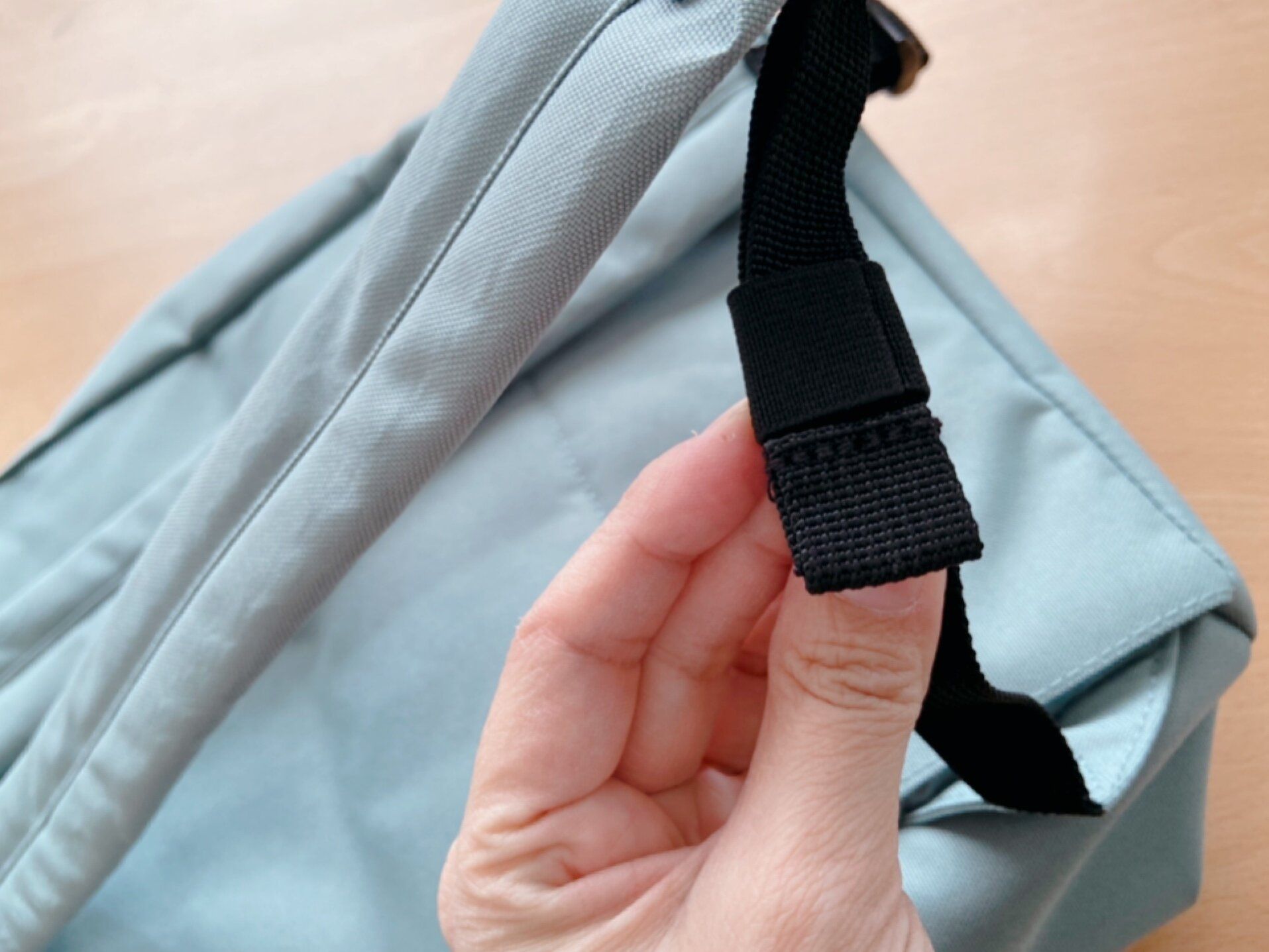 リュックの紐には長さを調節した時に余った紐を固定するバンド付き。紐がだら~んとしているとどこかに挟まったりする危険もあるので嬉しい工夫。