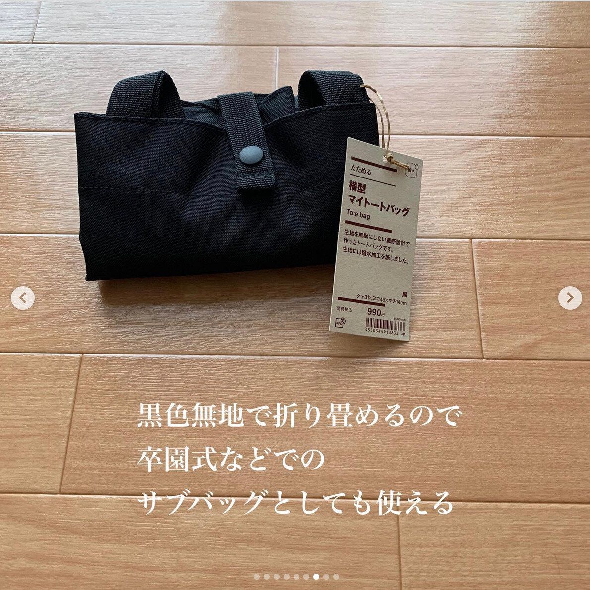 シンプルなデザインでどんな服装でも使いやすい「たためる横型マイトートバッグ」、サブバッグにいかがでしょうか。折りたたむとコンパクトですが、広げるとA4サイズも楽々入ります。撥水加工で水や汚れに強いのはうれしいですね!手洗いも可能です。税込990円です。