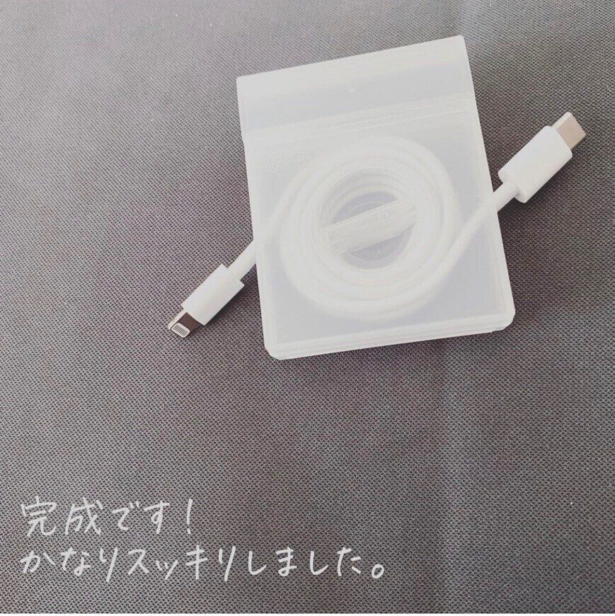 USBケーブルを持ち運びするとバッグの中でごちゃついてしまいませんか?地味に場所も取ります…。こちらの「ケーブル収納ケース」(190円)なら場所も取らずスッキリとした状態で持ち運び可能です。USBケーブルを収納した状態で端子部分を出し、そのまま充電することができます。出先で充電する場合もスッキリした状態でできるのでかなり重宝するのではないでしょうか。