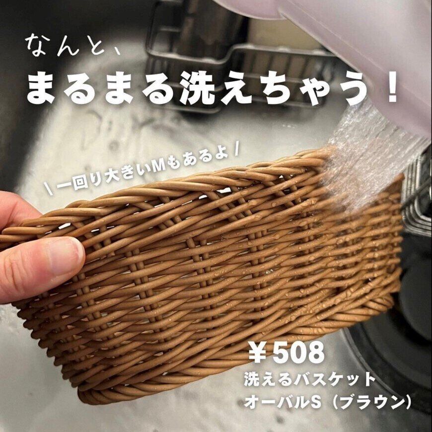 インテリアとして大活躍するカゴですが、洗えなくて隙間にゴミやほこりが溜まりがち…。せっかくおシャレなのに使うのをためらっていたかたも多いのではないでしょうか?そんなかたにはニトリ「洗えるバスケット オーバルS (ブラウン)」(508円)がオススメ。Mサイズ(610円)もあります。
