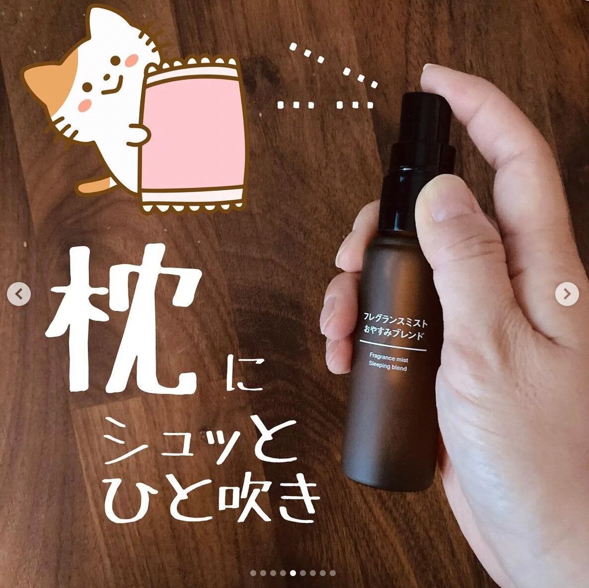 次にご紹介するのは、SNSでバズりまくり!フレグランスミスト「フレグランスミスト おやすみブレンド」(1,490円)です。名前どおり「よく眠れる」と評判で、品薄でなかなか入手できない時期もありました。寝る前に枕にシュッとひと吹きするとよく眠れるようです。