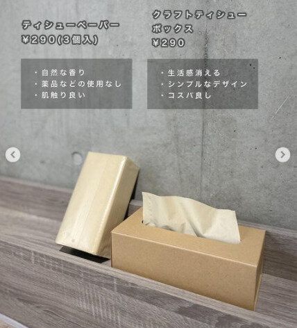 中に入れるティッシュは、無印良品の「ティシューペーパー3個組」290円がおすすめ。