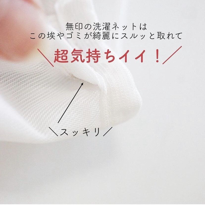 また、洗濯ネットは隅に埃や糸くずが溜まりがちですが、無印の洗濯ネットは素材や縫製が工夫されているため、埃などがスムーズに取れるのも人気の理由のひとつ。オンラインショップでは完売してしまっているアイテムのため、お店で見つけた場合は即買いすることをオススメします!