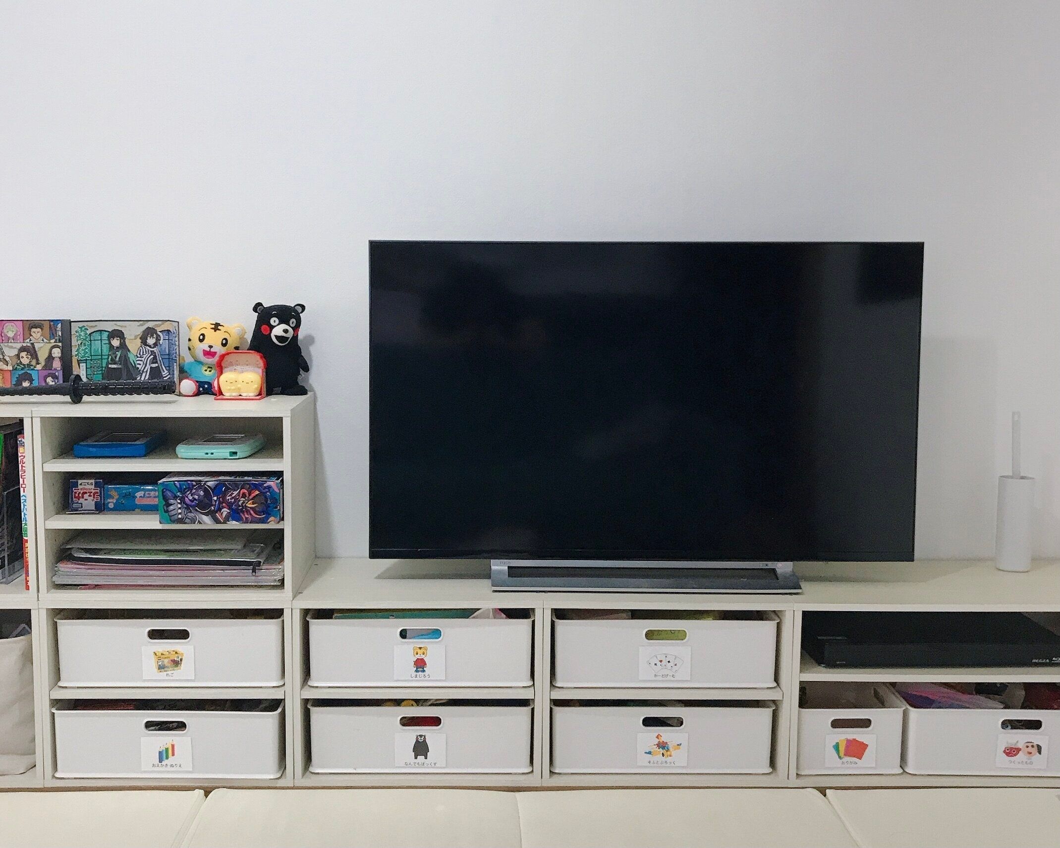 今は子どもたちがリビングで遊ぶことがほとんどなので、テレビ台兼おもちゃ箱として利用していますが、ゆくゆくは子ども部屋に移動したいなと考えています。