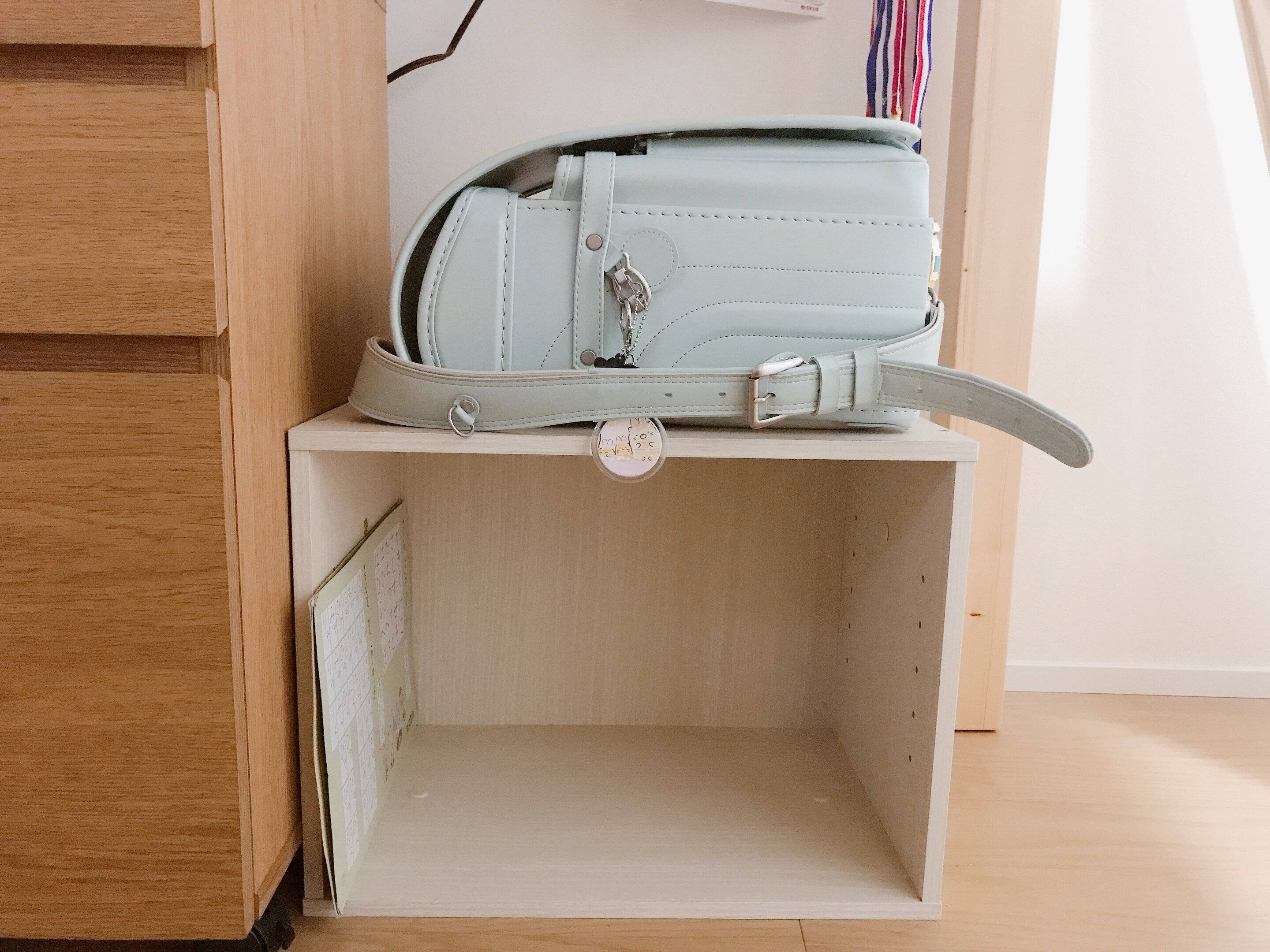 これまで、部屋の真ん中にポイっとほったらかしだったランドセルもカラーボックスを設置してから、娘がきちんと上に置いてくれるようになりました。