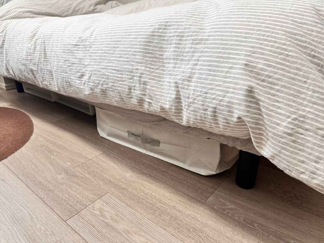 高さが16cmなので、ベッド下に収納も可能です!ハンドルがついているので、取り出しやすく大変便利です。