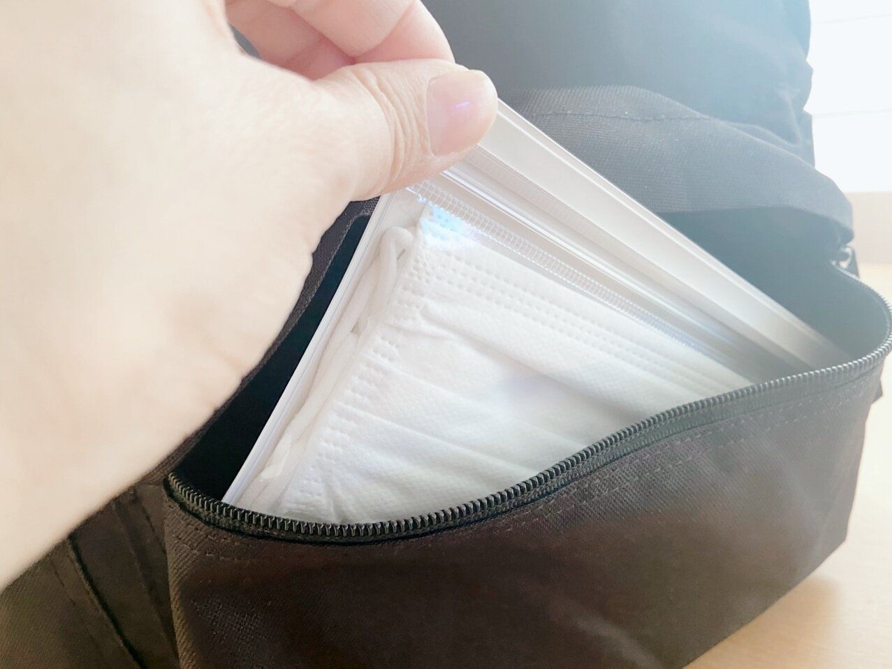 ケースのサイズ感が市販の使い捨てマスクとぴったりなので、マスクを数枚持ち歩くのにも便利。カバンの中に入っていると安心できる常備薬や裁縫セットの収納なんかにも使えます。