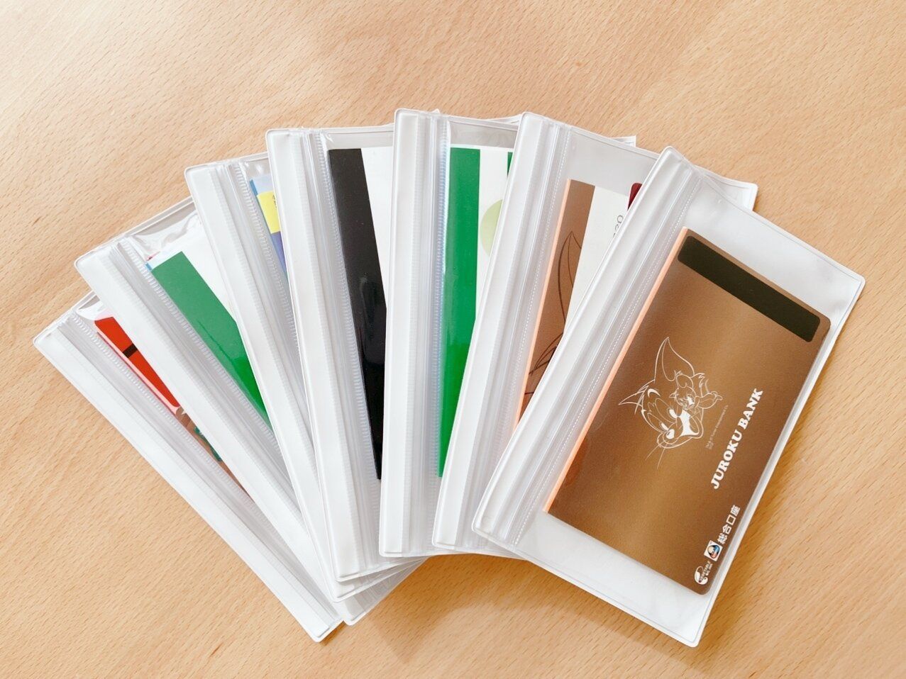我が家では銀行の通帳のサイズにぴったりなのでカードとセットして収納しています。銀行ごとに違うケースだと見た目もイマイチですが、ケースが揃うだけで統一感が出ます。中身もしっかり見えるので、中を開けてチェックしなくても必要なものが取り出せてノンストレスで使用しています。