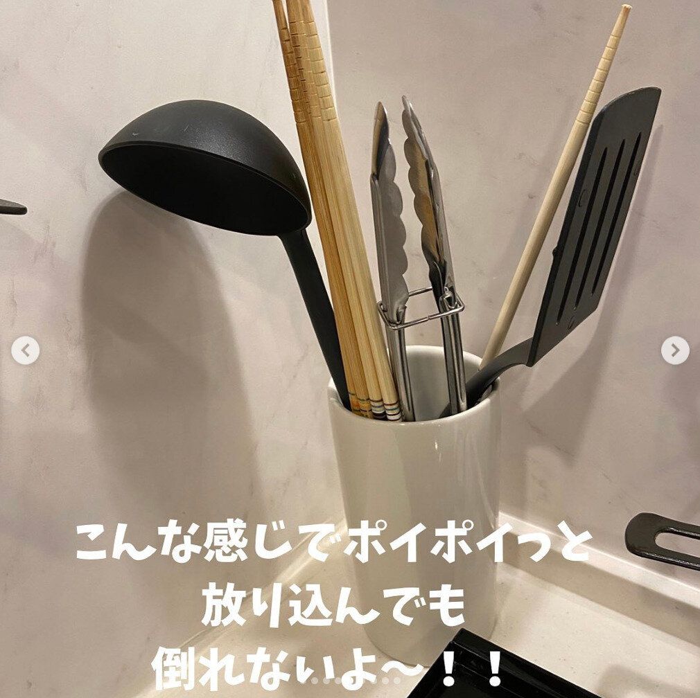 キッチンツールの整理整頓に使ってみたいのが、こちらのキッチンツールスタンド。磁器でできていてずっしりと重みがあり、ポイポイと適当に放り込んでも倒れません。キッチンでのちょっとしたイライラからの解放、大事ですよね。引き出しの中で使っても、引き出しの開け閉めくらいでは簡単には倒れないようですよ。690円です。