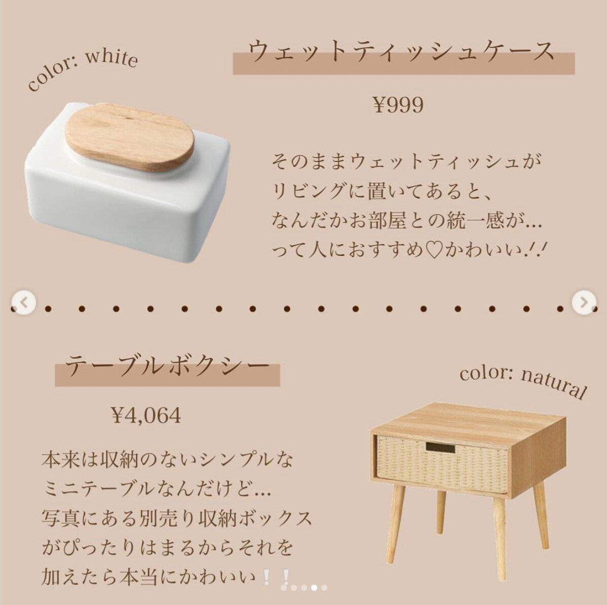 2つ目はサイドテーブルなどにちょうどいい、テーブルボクシーです。コンパクトなサイズは飾り棚にも、ひとり暮らしのお部屋にもぴったり。別売りの収納ボックスを組み合わせてもかわいいですよ。