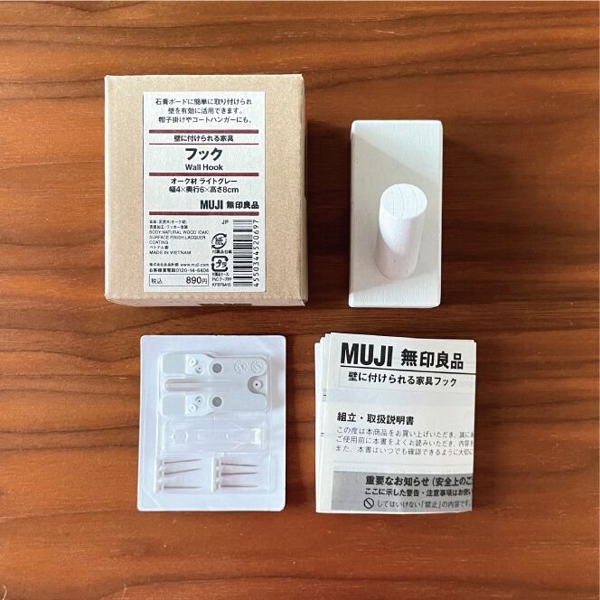今回私が購入した「壁に取り付けられる家具フック(オーク材/ライトグレー)」(890円)です。