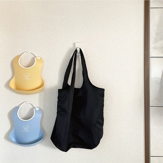 ものをかける部分がほどよい太さと長さなので、手提げをかけても取っ手が落ちることはありません。耐荷重も約2kgなのでエプロン、帽子、服、子どもの保育園用バッグなど身近なものの収納に役立ちます。