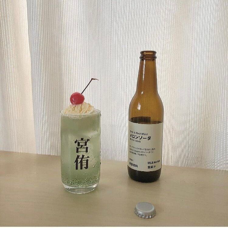 次に紹介する商品は、優しい甘さと淡い色味が特徴の「メロンソーダ」です。Cafe&Mealのメロンソーダは無印良品でも定番の人気の商品です。