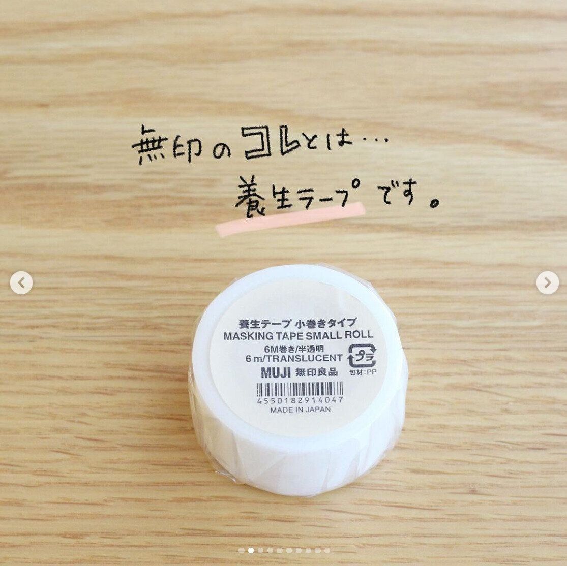 次に紹介する商品は、これ1つで片づけがとてもはかどる「養生テープ」です。無印良品の養生テープは、小巻タイプと小さめになっているため引き出しに収納しやすく、ちょっと使いに最適です。