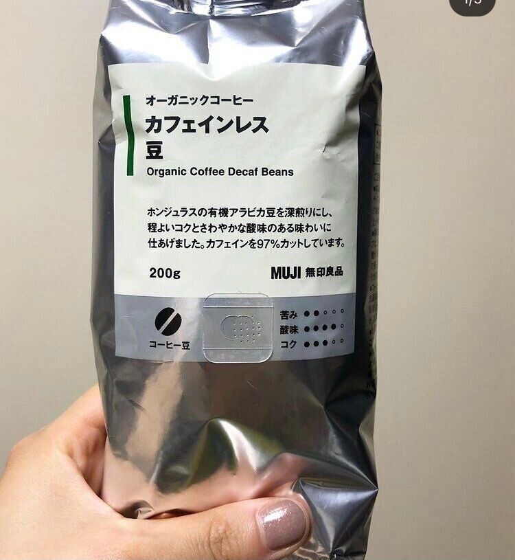 カフェインを97%カットした、オーガニックコーヒーが無印良品で楽しめるとSNSで大絶賛されたコーヒーです。コーヒーは豆タイプと粉タイプがあるため、ミルがないかたも楽しむことができます。