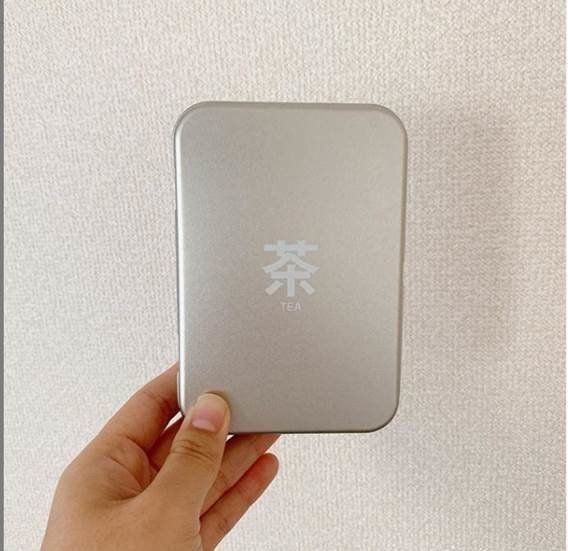 次に紹介する商品は、ブリキのケースがおしゃれな「黒豆茶」です。ブリキのケースの真ん中にシンプルに「茶」の一文字が入った目を惹く商品で、パケ買いするかたも多く見られます。